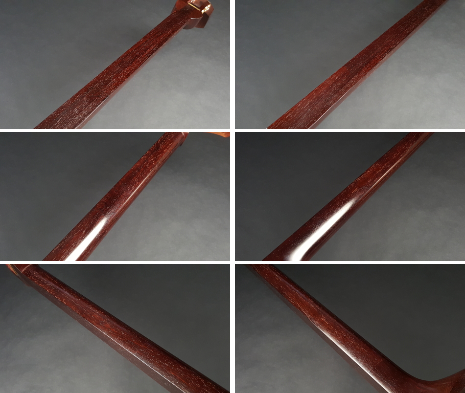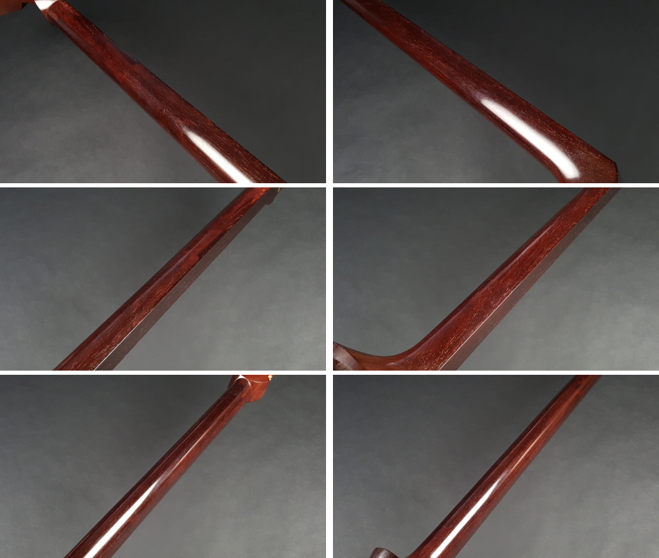弊社の厳しい査定基準を満たした中古三味線の【厳選品】地唄紅木三味線です。 棹は並の紅木になりますので、あまりトチなどは入っておりませんが、並紅木の中では硬質です。 棹表面はカンベリもなく綺麗な状態でしたが、更に磨きを入れております。傷という傷もなく全体的に綺麗な状態です。(殆ど使用されていないような感じでございます) 糸巻きは本黒檀(中古)ですが、調整済みですので止まり具合も良好です。 胴は写真の通り、艶もあり、質の良い花林胴になります。目立つ傷等もございません。大きさは通常の1分5厘大です。 皮は上の両面犬皮(通常価格40,000円)をお張りいたしましたので、三味線の音色を最大限引き出しております。 ハの高さや下がりなども点検、調整済みでございます。 付属品に関しては、気持ちよく使用していただきたいので、小物類は全て新品を取り付けております。 こちらの三味線は現在小売店店頭であれば新品約40万円~が相場ですが、花林三味線(新品)の定価以下で紅木三味線が手に入ります。今から始められる方や花林三味線からのお買い替えをご検討の方におすすめの三味線です。 全体的に目立った傷もなく、中古品の中でも綺麗な状態ですが、あくまでも中古品ですので、細かい傷や色むらなどが気になられる方は新品三味線の方でご検討いただければ幸いでございます。 ご不明な点等ございましたらお気軽にお問い合わせください。 ◆胴掛け、音緒は変更可能です。変更ご希望の方はご注文画面の通信欄に「胴掛け変更希望」とお書き添えください。ご注文後にメールで胴掛けの写真を数点お見せいたします。 ※月々3,500円払いでお買い求めいただけます! (オリコWEBクレジットローン36回払いの場合) ↓シミュレーション機能で毎月のお支払額の確認ができます。 【三味線は購入した後が大事】 三味線は消耗品でもありますので、長くご使用いただいていると、糸巻きが消耗して緩みやすくなったり、皮張替えが必要になったりと何れは修理などが必要になる時が訪れます。弊社ではご購入後のアフターフォローも万全を期しておりますので、「売って終わり」ではなく、修理などもお安くさせていただき、ご使用いただいていく上でのご質問やご相談など責任をもってサポートをさせていただき、お客様とは長いお付き合いをさせていただきたいと思っております。 弊社では「三味線の知識と選び方」のページでもご説明しております通り、中古三味線(個人売買等)はお勧めしておりませんが、ここ近年「三味線を買い取ってくれませんか?」や「中古三味線は取り扱っていませんか?」などの問い合わせが多い為、弊社独自の大変厳しい査定基準を設け、その基準を満たした三味線のみを買い取り、中古三味線として販売することといたしました。 厳しい買取査定基準を設けることで、数多くの中古三味線を取り扱う(ご用意する)ことは難しいですが、中古でも長くご愛用いただけるものをご用意させていただきます。もちろん、定期的に必要な皮張替え修理や糸巻き調整などの修理、ご購入後のアフター等は責任を持って弊社で行わせていただきます。 ※無傷の三味線を探しの方は新品三味線の方でご検討くださいませ。 ◇古物商許可証 第931010001749号 お客さまの声ページに弊社でご購入いただきましたお客様のご感想を掲載いたしております。 ※お客様へ 三味線をご購入いただきましたお客様からのご感想メールをお待ちいたしております。宜しくお願いいたします。