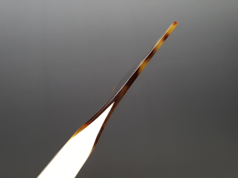 一枚の鼈甲で作り上げた「一枚物」の鼈甲撥です。