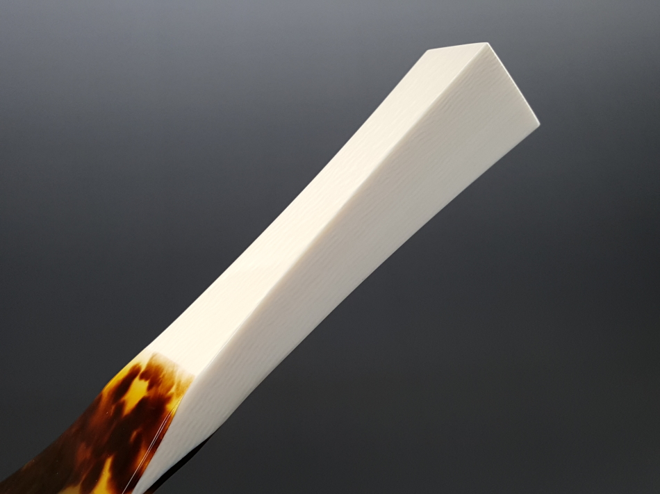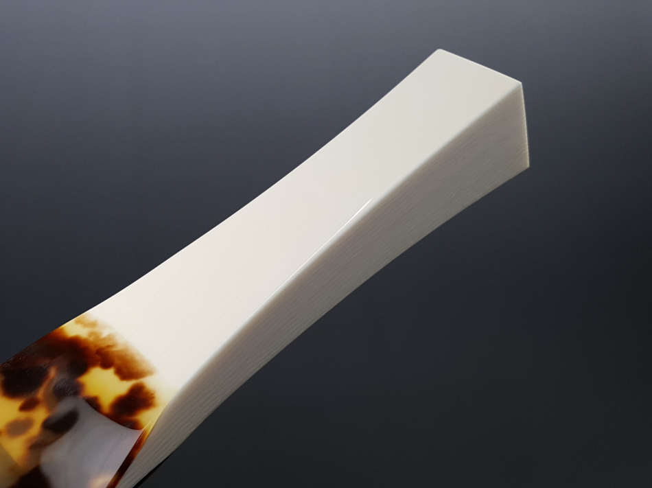 こちらの撥は最高級の本鼈甲と上質な本象牙を組み合わせた高山製の特注品になります。