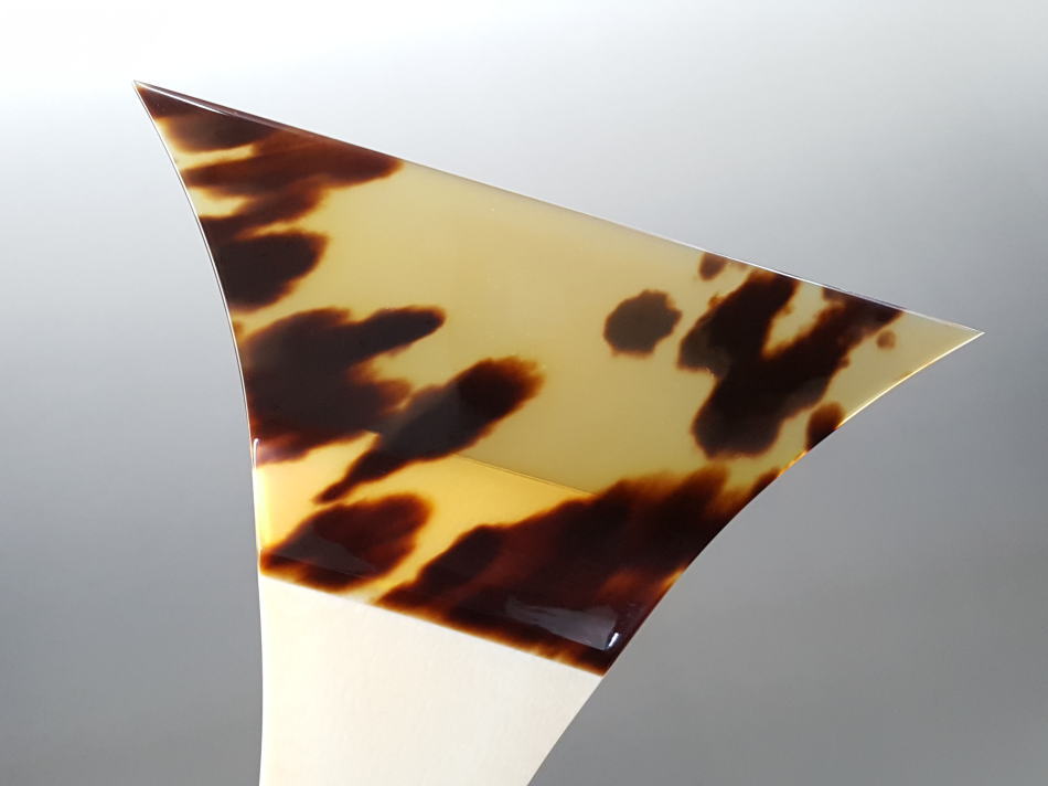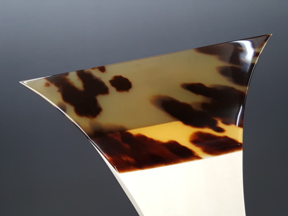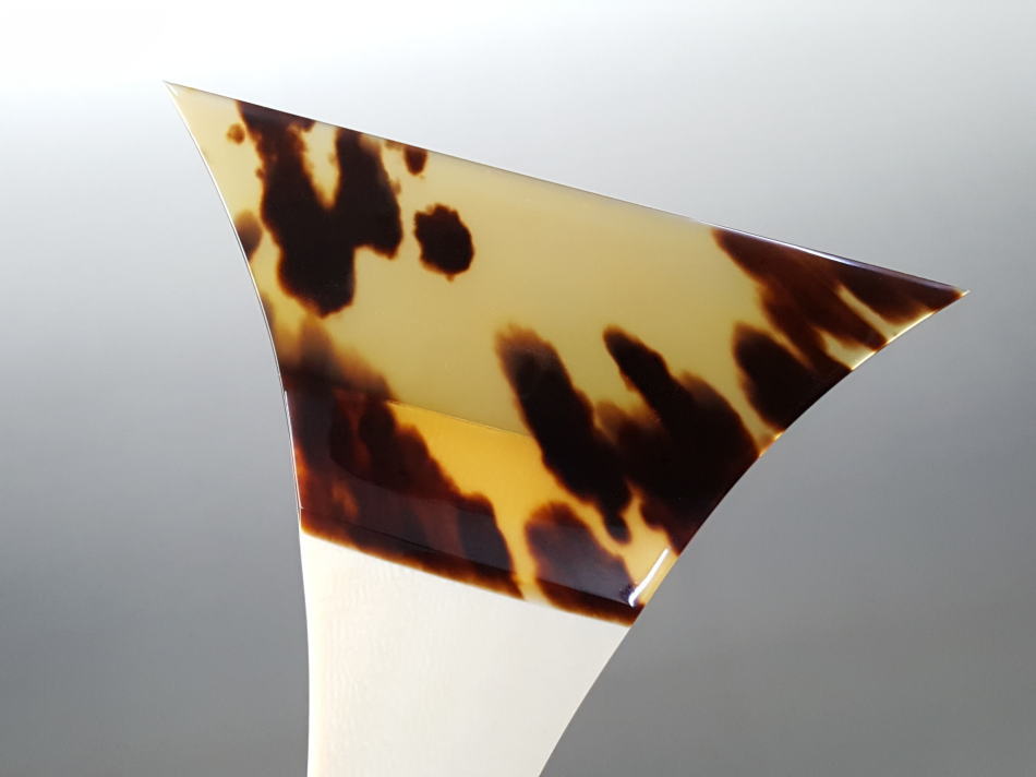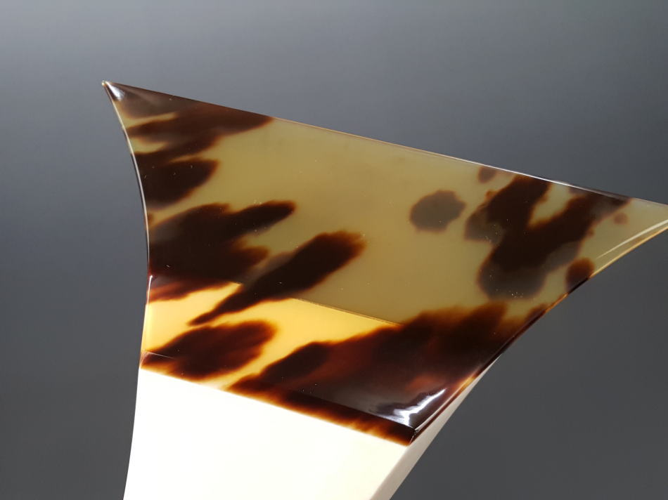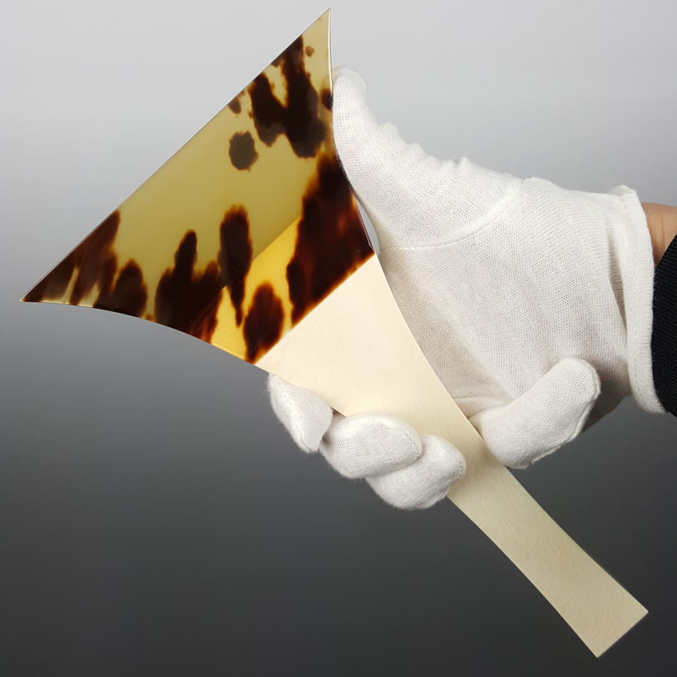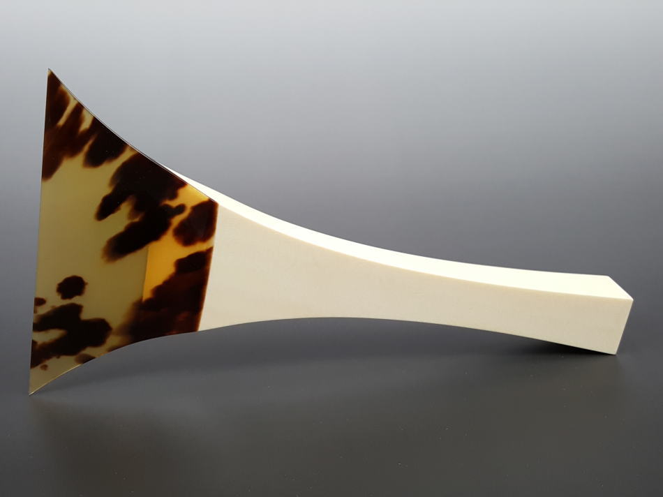 〔材質〕 本鼈甲(一枚物) 〔寸法〕 開き:134o 全長:237o 重さ:193g 才尻:25o×25o 撥先のしなり:軟い 手元・象牙台 ※上質な象牙台に鼈甲を組み合わせた高級品になります。象牙台は手に馴染みやすいので、大変握りやすく弾き易いです。 今では滅多にお目にかかれない極上の鼈甲に、筋目の少ない上質な象牙を組み合わせてあります。 年々鼈甲の数が減少し、現在ではメーカーですら新たに鼈甲を入手するのが非常に困難になっており、中古品としても滅多に入手できません。 手元の象牙台は筋目も少なく、新品同様の艶があり、すごく綺麗です。七八サイズの中でも手元が細く、重さもその分軽いので、手の小さい方や、通常の七八サイズでは重すぎると感じられる方にお勧めの撥でございます。 こちらの撥は現在小売店店頭であれば新品約80万円前後が相場です。 ![]() |