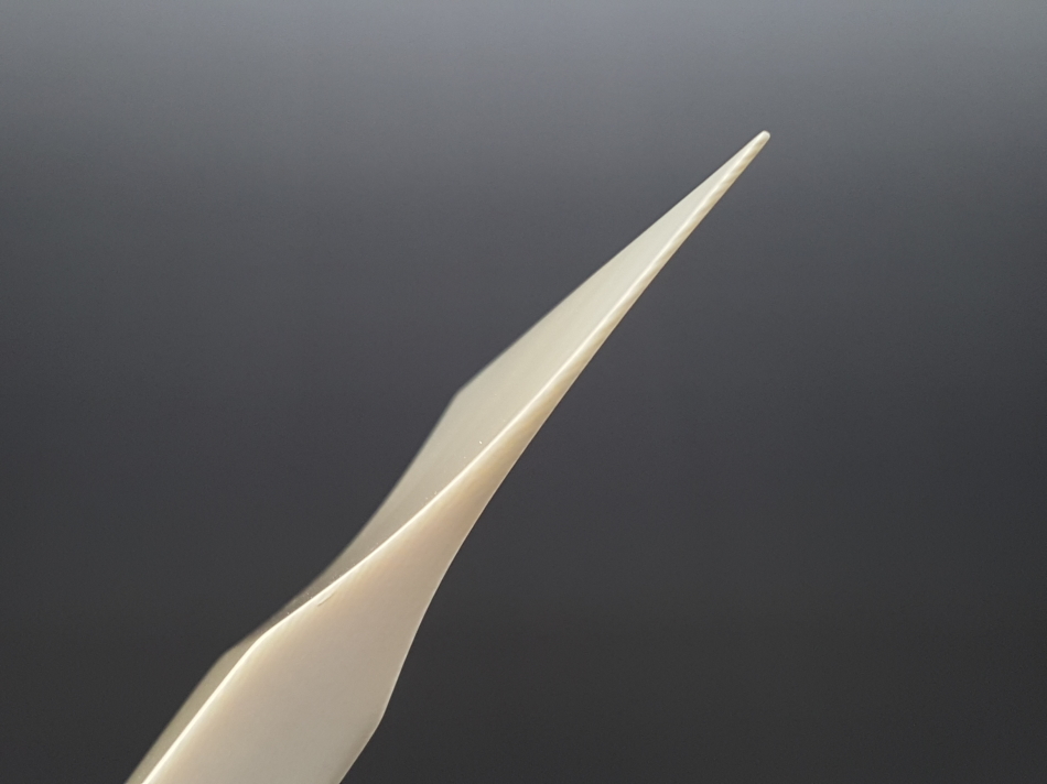 〔材質〕:本象牙(上) 〔寸法〕:七寸八分 開き:137o 全長:236o 才尻:29o×30o 重さ:248g ______ 中古品の象牙丸撥(地唄用)です。音色に味を付け、綺麗な余韻が特徴の象牙撥。 材質は上クラスになり、傷や欠け等もなく、品質自体は大変良好でございます。筋目も殆どなく、中古品とは思えないほど艶もあり、すごく綺麗です。中古品でもこんなに綺麗で質の良いものは滅多に入手はできません。新品でも現在は手に入れることは困難なぐらいの品質の丸撥でございます。 握り部分も七八サイズの中では少し細目になっておりますので、手の小さい方でも扱いやすいかと思います。 こちらの象牙丸撥は現在小売店店頭であれば新品約150万円以上が相場です。 ※月々11,400円払いでお買い求めいただけます! (オリコWEBクレジットローン36回払いの場合) ↓シミュレーション機能で毎月のお支払額の確認ができます。 ![]() |