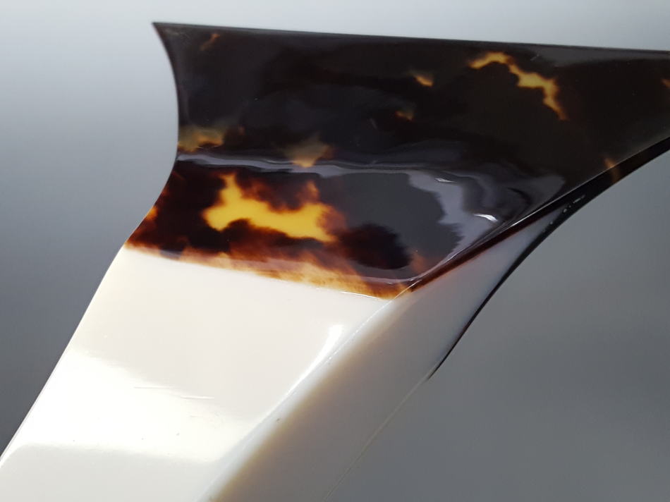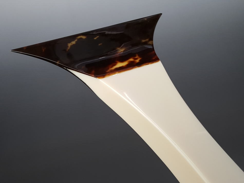 〔材質〕 本鼈甲(一枚物) 〔寸法〕 開き:120o 全長:218o 重さ:215g 才尻:28o×28.5o 撥先のしなり:軟い 手元・プラスチック 人気の高いふじ印製の地唄鼈甲撥(七二)です。 中古品ですが、殆ど使用されておりませんので、傷や欠け等もなく、品質自体は大変良好でございます。保管による「鼈甲の虫食い」などもございません。 撥全体を磨いておりますので大変綺麗な状態ですが、あくまでも中古品ですので、ご理解いただける方のみご検討くださいませ。 新品(鼈甲)もご用意しております。 ![]() |