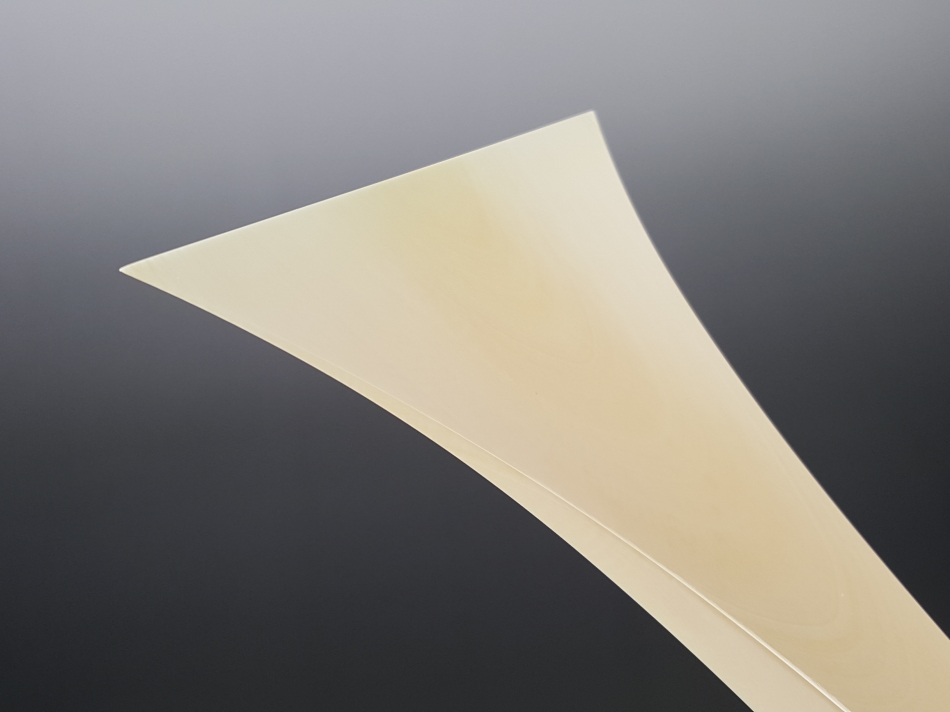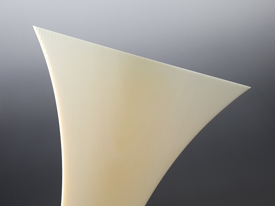 〔材質〕:本象牙(上) 〔寸法〕 開き:101o 全長:186o 才尻:23o×22o 重さ:96.5g ______ 中古品の象牙丸撥(長唄用)です。音色に味を付け、綺麗な余韻が特徴の象牙撥。 材質は上クラスになり、傷や欠け等もなく、品質自体は良好でございます。筋目も少なく、密度も高く、全体的に磨きも入れてますので艶もございます。撥先も適度なしなりがありますので弾き易いかと思います。 長唄用丸撥の中でも若干小ぶりになりますので、手の小さい方等にもお勧めです。 こちらの象牙丸撥は現在小売店店頭であれば新品約45〜50万円が相場です。 ![]() |