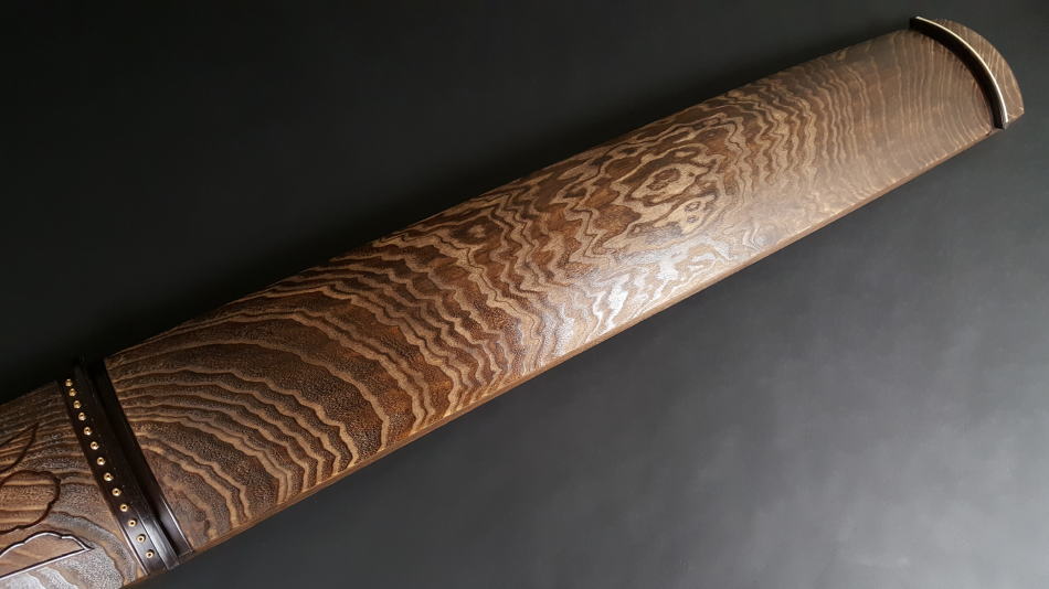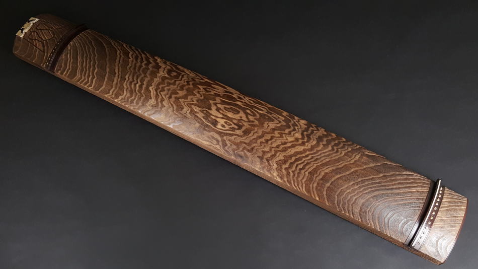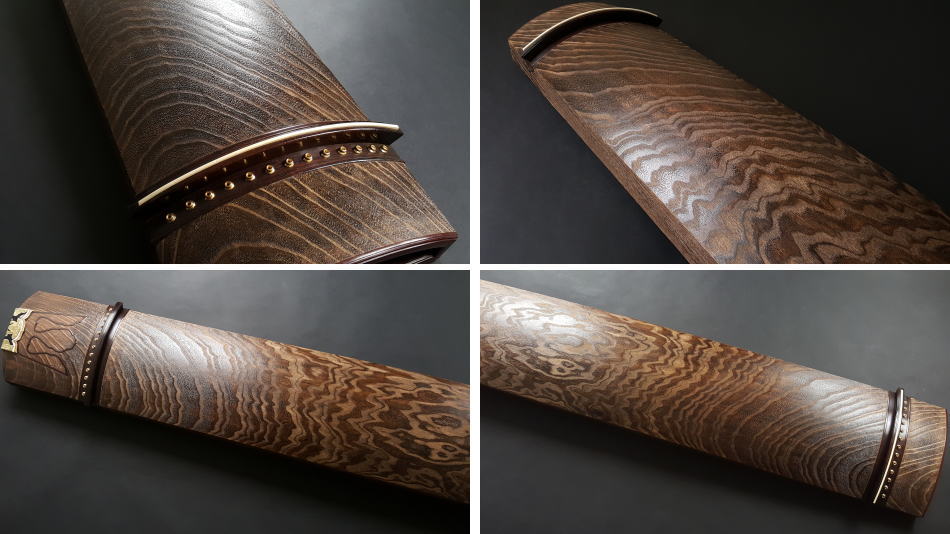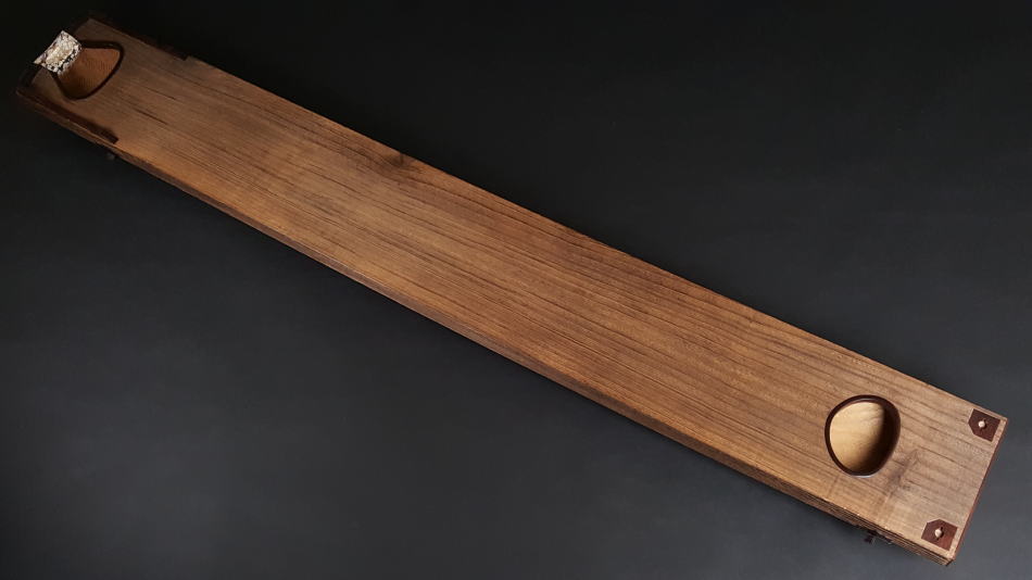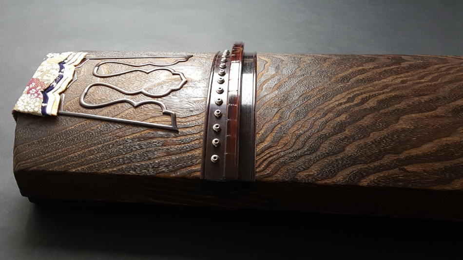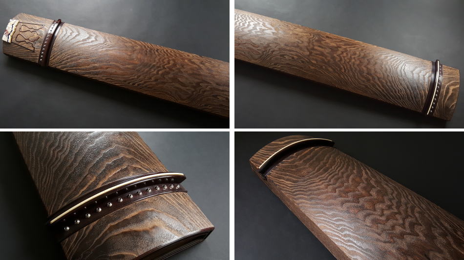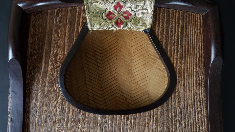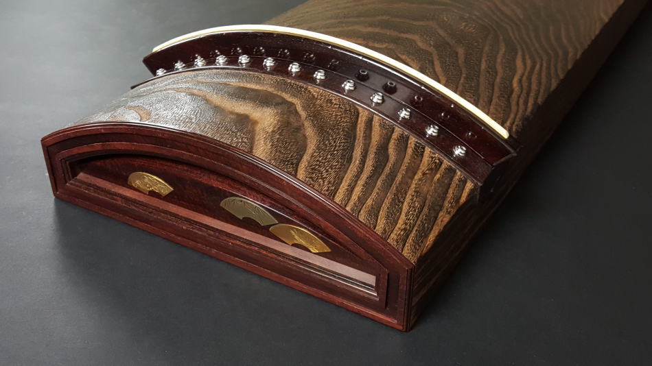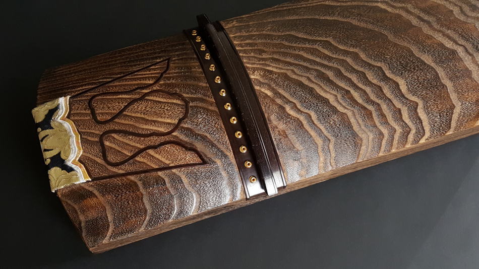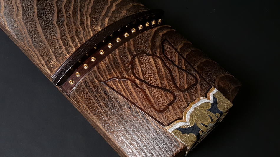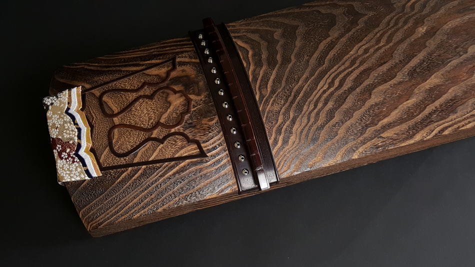 琴の中「甲の裏側」に音響を良くするために綾杉紋様を彫ります。音質も大変良く余韻がきれいなのが特徴です。