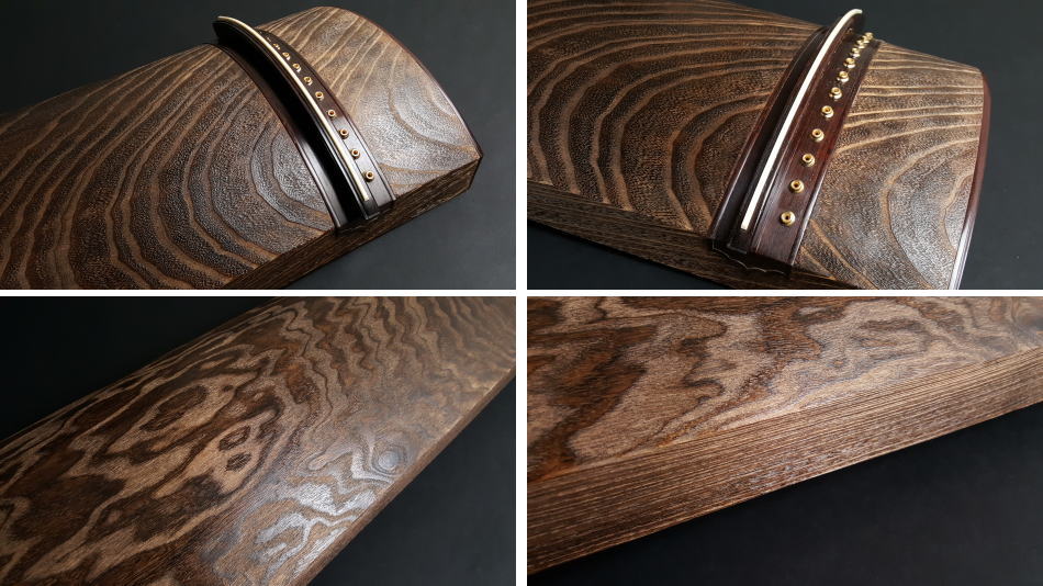 くり甲とは、甲と裏板のつなぎ目がない作りになっており、琴の中では最高のクラスになります。