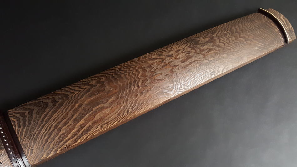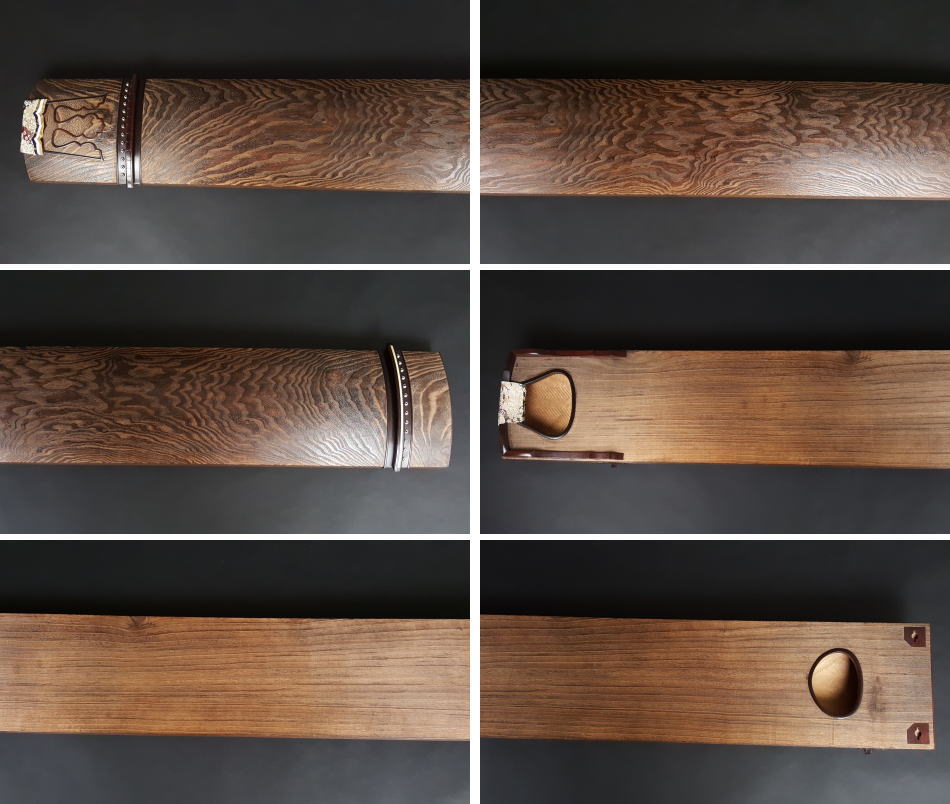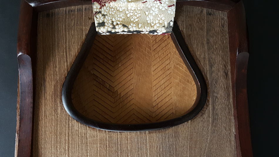 裏板にも木目の綺麗な柾板を使用し、甲の裏には綾杉彫を施してあります。