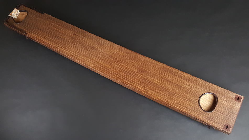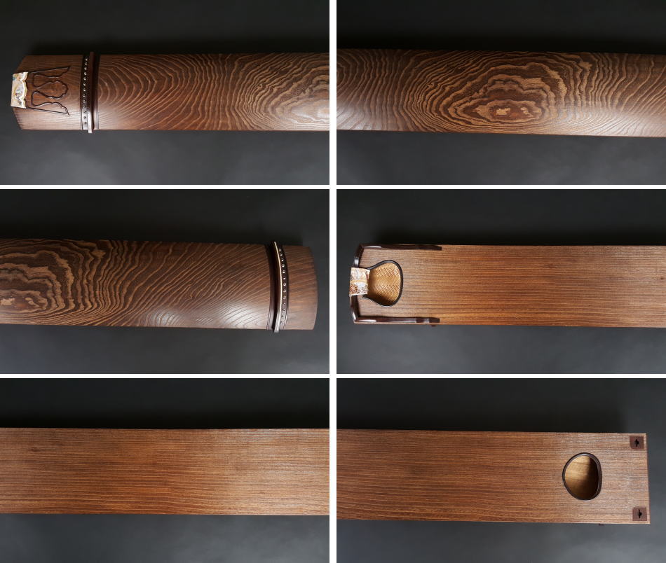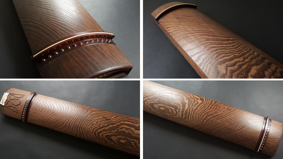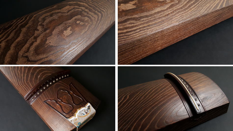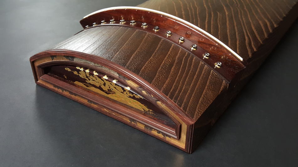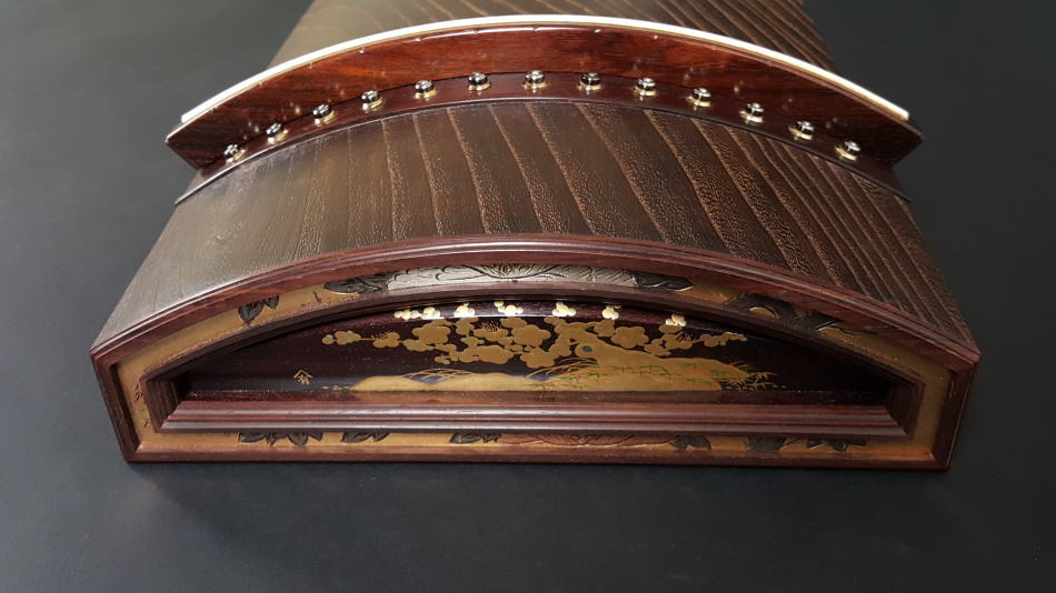 厳選中古品の高級くり甲琴(玉縁紅木巻)でございます。 会津桐の中でも最高級品になり、木味も非常にしっかりとしており重みもございます。今では非常に希少な桐材です。 くり甲琴の中でも新品で購入するとなると200万円クラスのお琴になります。装飾は紅木材を使用した玉縁巻きになっており、装飾の部分の色褪せなどは殆ど見られません。大変密度が高く、木の質は若干堅めですが、幅広い方にご使用いただけるのではないでしょうか。 全体的に密に木目が入っておりバランスも整っているので、ムラのない音色を奏でると思います。裏板には木目の綺麗な柾板を使用し、甲の裏には子持ち綾杉彫を施してあります。 琴柱を倒した際に出来る凹傷や凹跡も殆どなく、今までご使用なさっていた方が、凄く大事に丁寧にされていたのが伺えます。(使用感があまり感じられません) 装飾が主に紅木材だけなので、この価格帯で収まっておりますが、象牙巻きなどのお琴に匹敵するほどの品質です。 口前などの付属品に関しては、気持ちよく使用していただきたいので、全て新品(口前セットは写真のもの)を取り付けております。 ※糸は太さは、強力テトロン糸の17,5番を使用いたしますが、17番、または18番をご希望の場合はご注文の際にご指定ください。 強さなどもご要望があれば柔軟に対応させていただきます。 ご注文後に糸を掛けて万全の状態で納品させていただきます。 ※中古品の中でもすごく綺麗な状態ですが、あくまでも中古品ですので、細かい傷や色むらなどが気になられる方は新品三味線の方でご検討いただければ幸いでございます。 ご不明な点等ございましたらお気軽にお問い合わせください。 ※月々9,100円払いでお買い求めいただけます! (オリコWEBクレジットローン60回払いの場合) ↓シミュレーション機能で毎月のお支払額の確認ができます。 お客さまの声ページに弊社でご購入いただきましたお客様のご感想を掲載いたしておりますのご覧くださいませ。 ※お客様へ 琴をご購入いただきましたお客様からのご感想メールをお待ちいたしております。宜しくお願いいたします。 くり甲とは、甲と裏板のつなぎ目がない作りになっており、琴の中では最高のクラスになります。 琴の中「甲の裏側」に音響を良くするために綾杉紋様を彫ります。音質も大変良く余韻がきれいなのが特徴です。 一定の基準を満たした良質の桐材のみが、このくり甲としてつくられております。琴もこのクラスになると芸術品、芸術品的な様相を帯びてきます。
