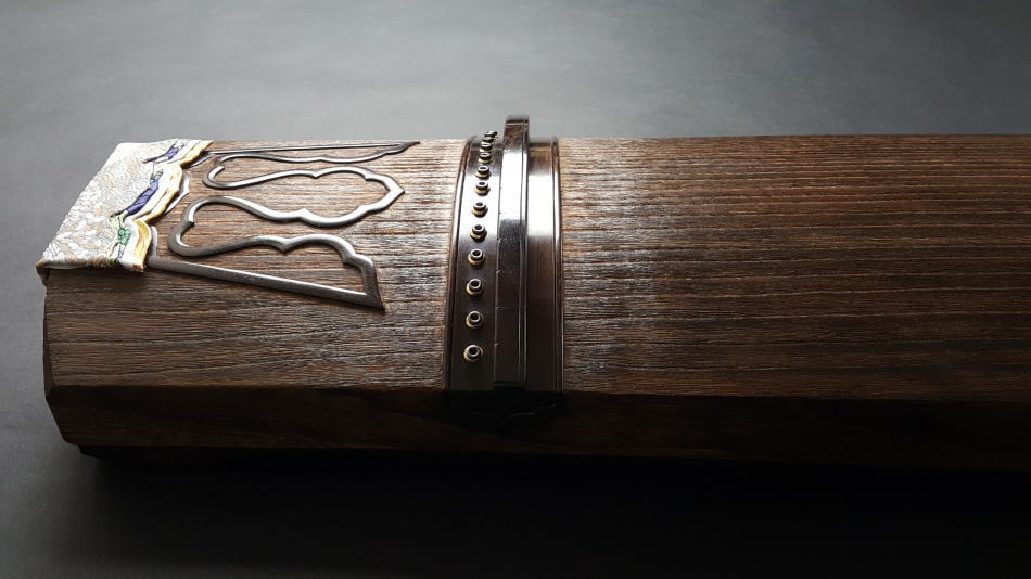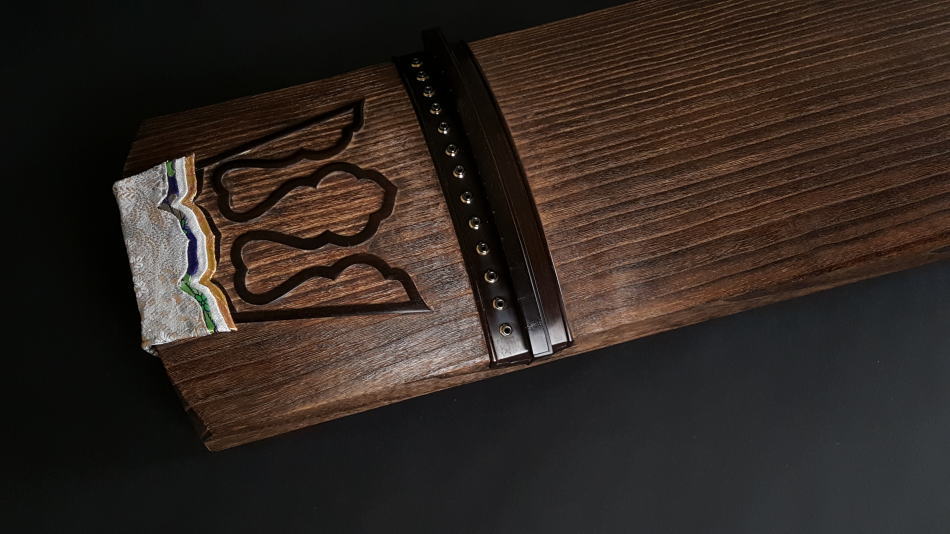 琴の中「甲の裏側」に音響を良くするために綾杉紋様を彫ります。音質も大変良く余韻がきれいなのが特徴です。