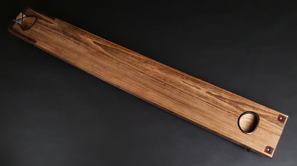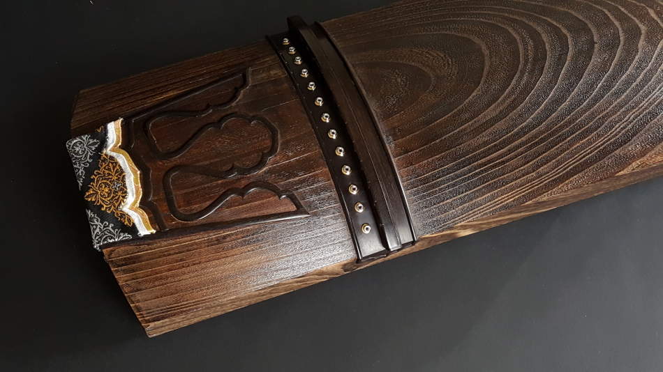 琴の中「甲の裏側」に音響を良くするために綾杉紋様を彫ります。音質も大変良く余韻がきれいなのが特徴です。