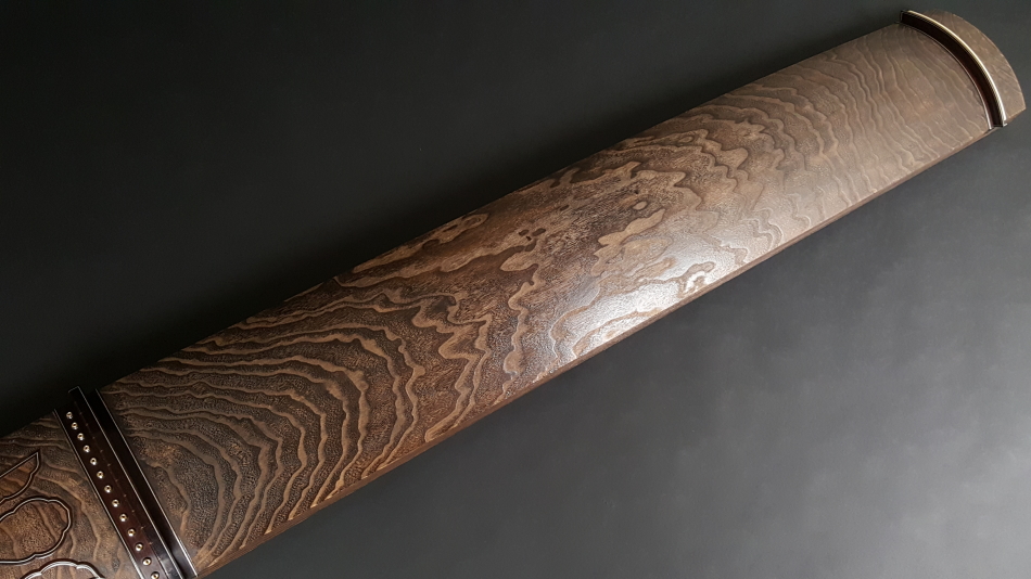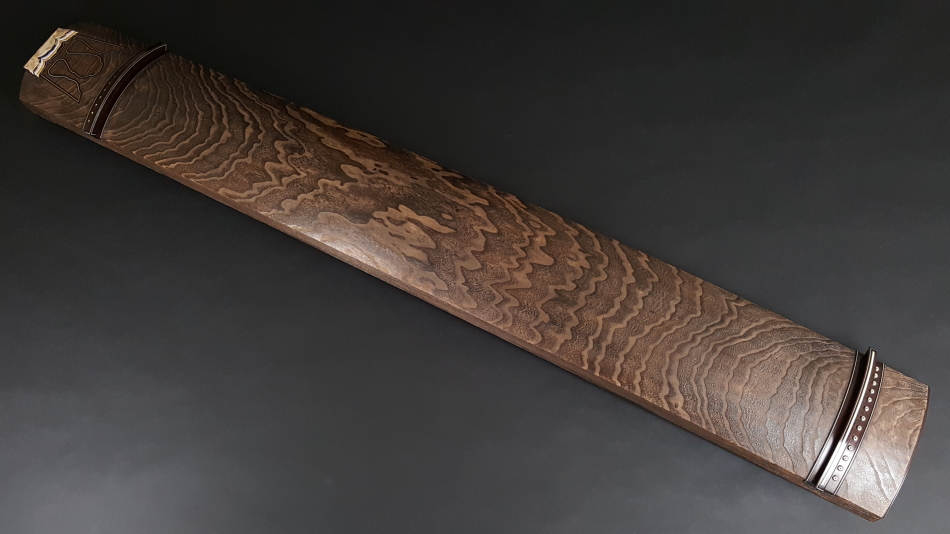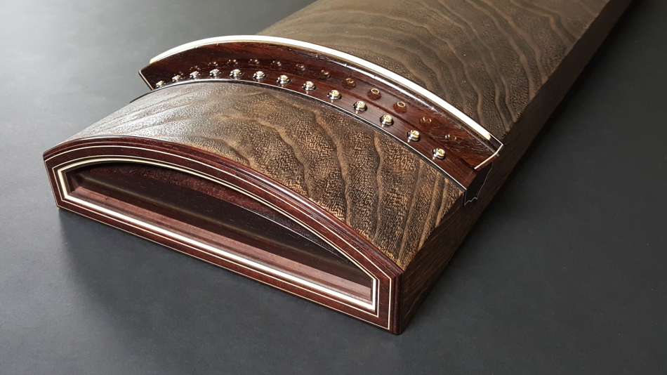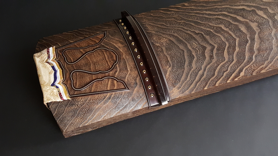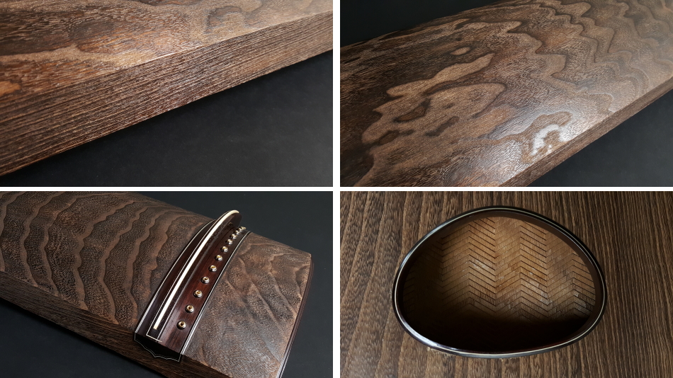 琴の中「甲の裏側」に音響を良くするために綾杉紋様を彫ります。音質も大変良く余韻がきれいなのが特徴です。