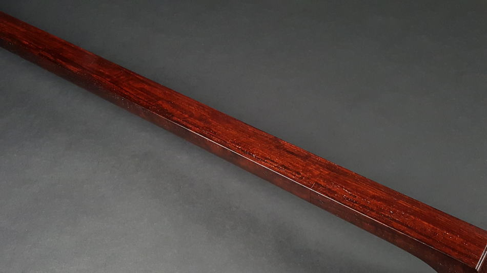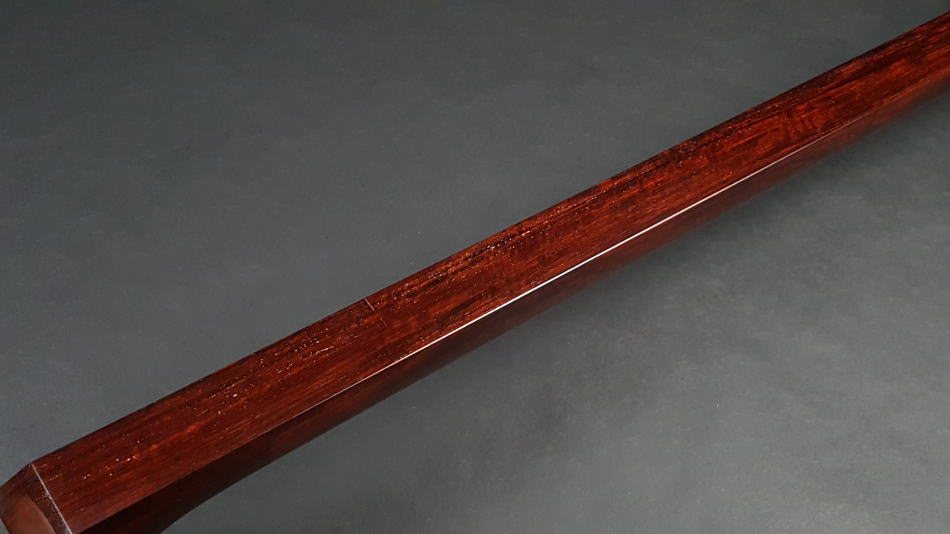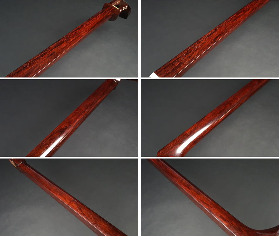 弊社の厳しい査定基準を満たした中古三味線の【厳選品】地唄紅木三味線(子持ち綾杉胴付)です。 並の紅木棹になりますのでトチはないですが、硬質で上質な紅木材になります。 棹表面はカンベリはしておりませんでしたが、磨きを入れておりますの綺麗な状態です。表面以外も艶があり全体的にすごく綺麗な状態です。 糸巻きは本黒檀が付いており、調整済みですので止まり具合も良好です。 胴は子持ち綾杉胴になります。写真の通り、艶もあり、質の良い花林胴です。特に目立った傷もございません。大きさは基本の1分5厘大です。 皮は上の両面犬皮(通常価格40,000円)をお張りいたしましたので、三味線の音色を最大限引き出しております。鳴りも良いので大変お買得だと思います。 ハの高さや下がりなども点検、調整済みでございます。 付属品に関しては、気持ちよく使用していただきたいので、小物類は全て新品を取り付けております。 こちらの三味線は現在小売店店頭であれば新品約40万円~45万円が相場ですが、花林三味線(新品)の定価以下で紅木三味線が手に入ります。今から始められる方や花林三味線からのお買い替えをご検討の方におすすめの三味線です。 全体的に傷もなく、中古品の中でも大変綺麗な状態ですが、あくまでも中古品ですので、細かい傷や色むらなどが気になられる方は新品三味線の方でご検討いただければ幸いでございます。 ご不明な点等ございましたらお気軽にお問い合わせください。 ◆胴掛け、音緒は変更可能です。変更ご希望の方はご注文画面の通信欄に「胴掛け変更希望」とお書き添えください。ご注文後にメールで胴掛けの写真を数点お見せいたします。 ※月々4,000円払いでお買い求めいただけます! (オリコWEBクレジットローン36回払いの場合) ↓シミュレーション機能で毎月のお支払額の確認ができます。 【三味線は購入した後が大事】 三味線は消耗品でもありますので、長くご使用いただいていると、糸巻きが消耗して緩みやすくなったり、皮張替えが必要になったりと何れは修理などが必要になる時が訪れます。弊社ではご購入後のアフターフォローも万全を期しておりますので、「売って終わり」ではなく、修理などもお安くさせていただき、ご使用いただいていく上でのご質問やご相談など責任をもってサポートをさせていただき、お客様とは長いお付き合いをさせていただきたいと思っております。 弊社では「三味線の知識と選び方」のページでもご説明しております通り、中古三味線(個人売買等)はお勧めしておりませんが、ここ近年「三味線を買い取ってくれませんか?」や「中古三味線は取り扱っていませんか?」などの問い合わせが多い為、弊社独自の大変厳しい査定基準を設け、その基準を満たした三味線のみを買い取り、中古三味線として販売することといたしました。 厳しい買取査定基準を設けることで、数多くの中古三味線を取り扱う(ご用意する)ことは難しいですが、中古でも長くご愛用いただけるものをご用意させていただきます。もちろん、定期的に必要な皮張替え修理や糸巻き調整などの修理、ご購入後のアフター等は責任を持って弊社で行わせていただきます。 ※無傷の三味線を探しの方は新品三味線の方でご検討くださいませ。 ◇古物商許可証 第931010001749号 お客さまの声ページに弊社でご購入いただきましたお客様のご感想を掲載いたしております。 ※お客様へ 三味線をご購入いただきましたお客様からのご感想メールをお待ちいたしております。宜しくお願いいたします。