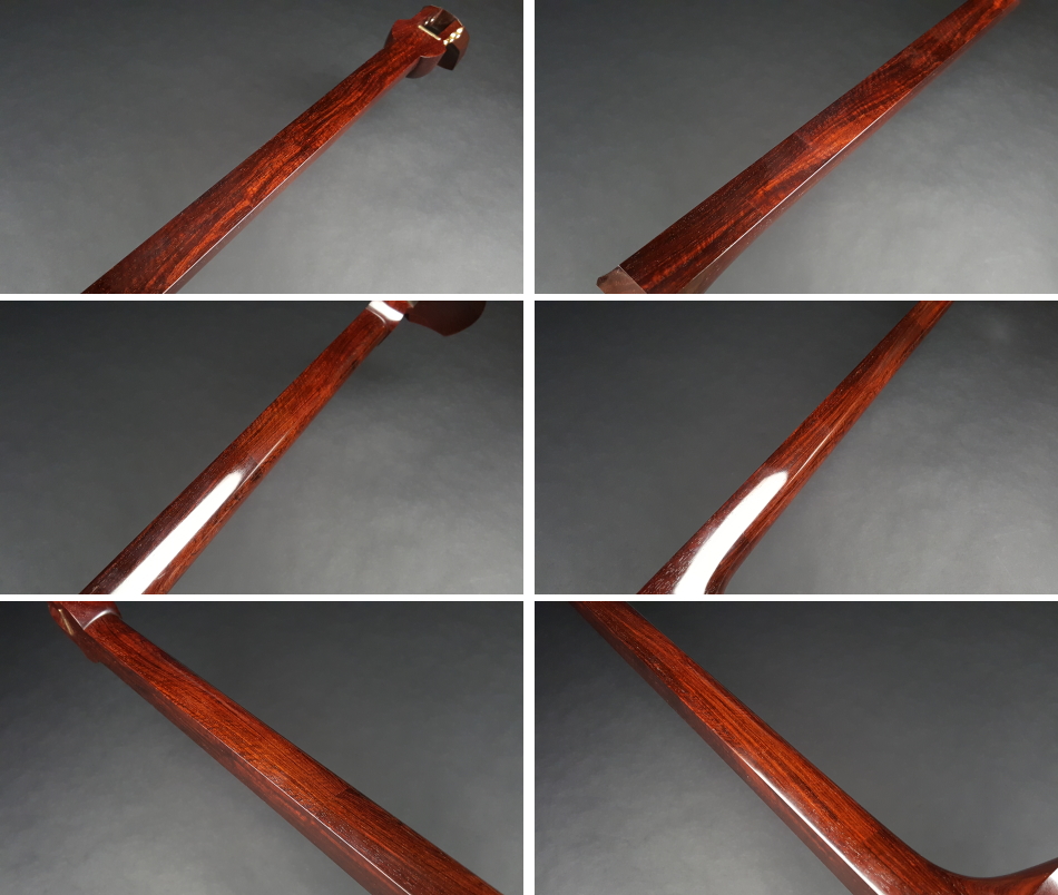 弊社の厳しい査定基準を満たした中古三味線の【厳選品】地唄紅木三味線です。 棹は並の紅木になりますので、あまりトチなどは入っておりませんが、並紅木の中では硬質です。 棹表面はカンベリもなく綺麗な状態でしたが、更に磨きを入れております。表面以外も深みのある艶があり、傷という傷もなく全体的に綺麗な状態です。(殆ど使用されていないような感じでございます) 糸巻きは本黒檀(中古)ですが、調整済みですので止まり具合も良好です。 胴は写真の通り、艶もあり、質の良い花林胴になります。目立つ傷等もございません。大きさは通常の1分5厘大です。 皮は上の両面犬皮(通常価格40,000円)をお張りいたしましたので、三味線の音色を最大限引き出しております。 ハの高さや下がりなども点検、調整済みでございます。 付属品に関しては、気持ちよく使用していただきたいので、小物類は全て新品を取り付けております。 こちらの三味線は現在小売店店頭であれば新品約40万円~が相場ですが、花林三味線(新品)の定価以下で紅木三味線が手に入ります。今から始められる方や花林三味線からのお買い替えをご検討の方におすすめの三味線です。 全体的に目立った傷もなく、中古品の中でも綺麗な状態ですが、あくまでも中古品ですので、細かい傷や色むらなどが気になられる方は新品三味線の方でご検討いただければ幸いでございます。 ご不明な点等ございましたらお気軽にお問い合わせください。 ◆胴掛け、音緒は変更可能です。変更ご希望の方はご注文画面の通信欄に「胴掛け変更希望」とお書き添えください。ご注文後にメールで胴掛けの写真を数点お見せいたします。 ※月々3,500円払いでお買い求めいただけます! (オリコWEBクレジットローン36回払いの場合) ↓シミュレーション機能で毎月のお支払額の確認ができます。 【三味線は購入した後が大事】 三味線は消耗品でもありますので、長くご使用いただいていると、糸巻きが消耗して緩みやすくなったり、皮張替えが必要になったりと何れは修理などが必要になる時が訪れます。弊社ではご購入後のアフターフォローも万全を期しておりますので、「売って終わり」ではなく、修理などもお安くさせていただき、ご使用いただいていく上でのご質問やご相談など責任をもってサポートをさせていただき、お客様とは長いお付き合いをさせていただきたいと思っております。 弊社では「三味線の知識と選び方」のページでもご説明しております通り、中古三味線(個人売買等)はお勧めしておりませんが、ここ近年「三味線を買い取ってくれませんか?」や「中古三味線は取り扱っていませんか?」などの問い合わせが多い為、弊社独自の大変厳しい査定基準を設け、その基準を満たした三味線のみを買い取り、中古三味線として販売することといたしました。 厳しい買取査定基準を設けることで、数多くの中古三味線を取り扱う(ご用意する)ことは難しいですが、中古でも長くご愛用いただけるものをご用意させていただきます。もちろん、定期的に必要な皮張替え修理や糸巻き調整などの修理、ご購入後のアフター等は責任を持って弊社で行わせていただきます。 ※無傷の三味線を探しの方は新品三味線の方でご検討くださいませ。 ◇古物商許可証 第931010001749号 お客さまの声ページに弊社でご購入いただきましたお客様のご感想を掲載いたしております。 ※お客様へ 三味線をご購入いただきましたお客様からのご感想メールをお待ちいたしております。宜しくお願いいたします。