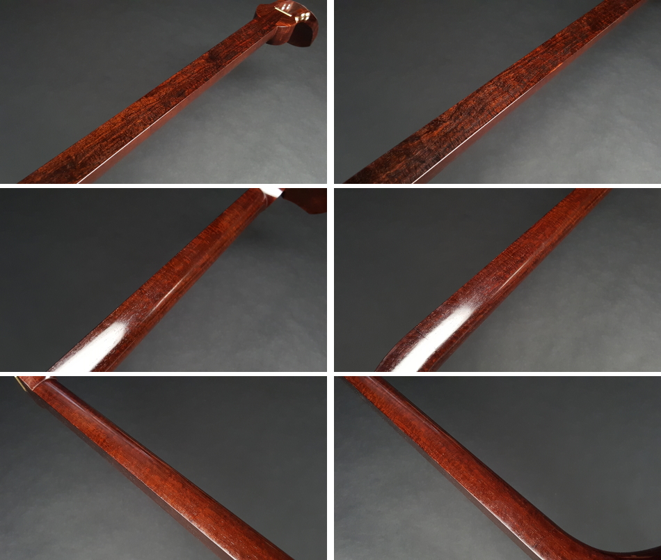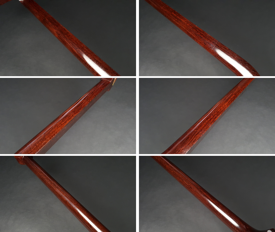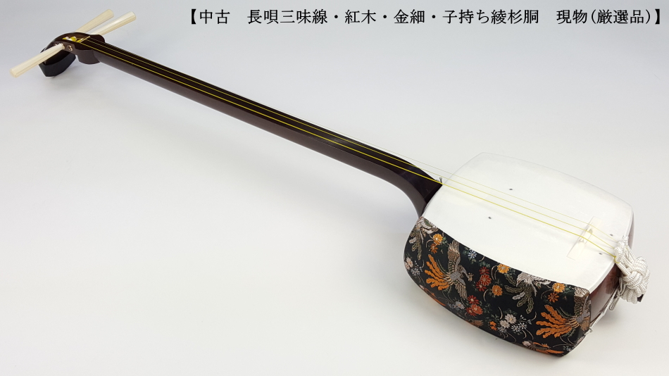 弊社の厳しい査定基準を満たした中古三味線の【厳選品】長唄金細三味線(細棹)です。 三味線のすべてを兼ね備えた最高品質の長唄三味線になります。中古でも滅多に入手ができない程の品物です。もう少し高く販売したい程の三味線ですが、中古ですのでこれでも価格を抑えております。 棹は写真の通り棹全体にトチ巻いており木の質も凄く良いです。 (側面は若干沈みトチです) 棹表面はカンベリ直し修理をしておりますので、新品のように綺麗な状態です。表面以外も艶があり全体的に綺麗な状態です。 糸巻きは本象牙面取り(中古)が付いており、調整済みので止まり具合も良好です。 こちらの三味線は現在小売店店頭での新品約200万円以上相当になります。 胴は子持ち綾杉胴です。胴には目立つ傷もなく艶もあり、全体的に中古でも綺麗な方だと思います。胴の色合いは写真の通りです。(通常の長唄胴のサイズより若干厚めなので胴掛けは5厘大用でも使用可能です) ハの高さや下がりなども点検、調整済みでございます。 皮は極上の両面四つ(通常価格80,000円)をお張りいたしました。東京だと同等の皮張りだけで10万円以上はいたします。非常に繊細で美しい音色を奏でております。さすが金細三味線です。 付属品に関しては、気持ちよく使用していただきたいので全て新品を取り付けております。 全体的に目立った傷もなく、中古品の中でも綺麗な状態ですが、あくまでも中古品ですので、細かい傷や色むらなどが気になられる方は新品三味線の方でご検討いただければ幸いでございます。 ご不明な点等ございましたらお気軽にお問い合わせください。 ◆胴掛け、音緒は変更可能です。変更ご希望の方はご注文画面の通信欄に「胴掛け変更希望」とお書き添えください。ご注文後にメールで胴掛けの写真を数点お見せいたします。 ※月々9,700円払いでお買い求めいただけます! (オリコWEBクレジットローン36回払いの場合) ↓シミュレーション機能で毎月のお支払額の確認ができます。 【三味線は購入した後が大事】 三味線は消耗品でもありますので、長くご使用いただいていると、糸巻きが消耗して緩みやすくなったり、皮張替えが必要になったりと何れは修理などが必要になる時が訪れます。弊社ではご購入後のアフターフォローも万全を期しておりますので、「売って終わり」ではなく、修理などもお安くさせていただき、ご使用いただいていく上でのご質問やご相談など責任をもってサポートをさせていただき、お客様とは長いお付き合いをさせていただきたいと思っております。 弊社では「三味線の知識と選び方」のページでもご説明しております通り、中古三味線(個人売買等)はお勧めしておりませんが、ここ近年「三味線を買い取ってくれませんか?」や「中古三味線は取り扱っていませんか?」などの問い合わせが多い為、弊社独自の大変厳しい査定基準を設け、その基準を満たした三味線のみを買い取り、中古三味線として販売することといたしました。 厳しい買取査定基準を設けることで、数多くの中古三味線を取り扱う(ご用意する)ことは難しいですが、中古でも長くご愛用いただけるものをご用意させていただきます。もちろん、定期的に必要な皮張替え修理や糸巻き調整などの修理、ご購入後のアフター等は責任を持って弊社で行わせていただきます。 ※無傷の三味線を探しの方は新品三味線の方でご検討くださいませ。 ◇古物商許可証 第931010001749号 お客さまの声ページに弊社でご購入いただきましたお客様のご感想を掲載いたしております。 ※お客様へ 三味線をご購入いただきましたお客様からのご感想メールをお待ちいたしております。宜しくお願いいたします。