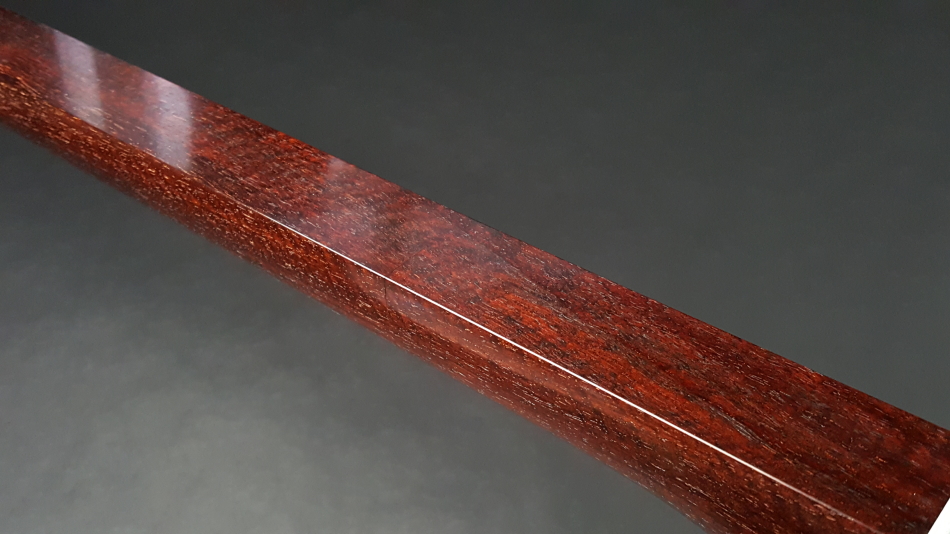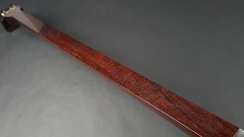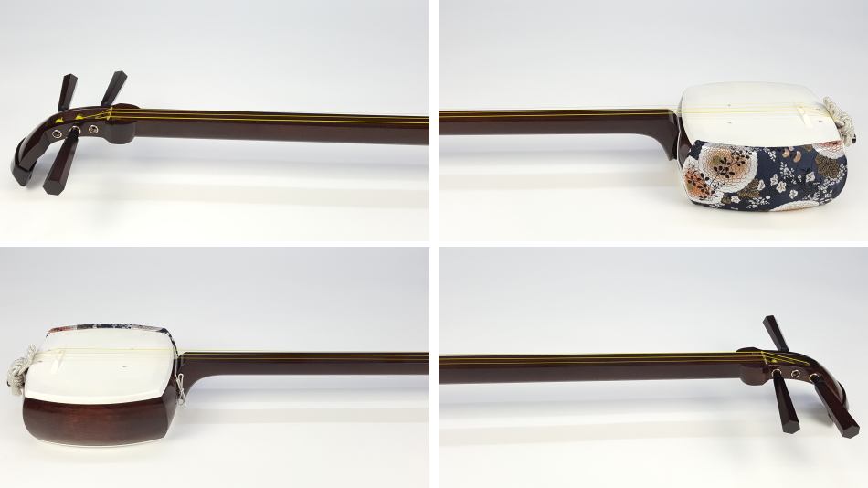 弊社の厳しい査定基準を満たした中古三味線の【厳選品】民謡金細三味線(正寸)です。弊社の技術をいかんなく発揮し、最高の状態に仕上げました。 三味線のすべてを兼ね備えた最高品質の民謡三味線になります。殆ど使用されておらず、棹が非常に硬質で、中古でも滅多に入手ができない程の品物です。もう少し高く販売したい程の三味線ですが、中古ですのでこれでも価格を抑えております。 棹全体にトチが巻いており、木の質も硬質で凄く良いです。 民謡三味線の正寸は中古の数が少なく、これほどの品質の物はそう簡単には手に入れることはできません。 棹表面はカンベリはしておりませんでしたが、磨きを入れておりますので綺麗な状態です。表面以外も艶があり全体的に綺麗な状態です。 糸巻きは紅木本黒檀(中古)が付いておりますが、摩耗などもしておらず、新品に近い状態です。 こちらの三味線は現在小売店店頭での新品約200万円以上相当になります。 胴は子持ち綾杉胴(1分5厘大)です。 通常民謡は5厘大の大きさですが、大き目の胴がセットされております。胴には傷もなく、艶があり、全体的に中古でも大変綺麗な方だと思います。胴の色合いは写真の通りです。ハの高さや下がりなども点検済みでございます。 皮は極上の両面四つ(通常価格80,000円)をお張りいたしました。胴が大きめですので通常よりも厚めの皮を張っております。東京だと同等の皮張りだけで10万円以上はいたします。非常に繊細で美しい音色を奏でております。さすが金細三味線です。 付属品に関しては、気持ちよく使用していただきたいので、小物類は全て新品を取り付けております。 全体的に目立った傷もなく、中古品の中でも綺麗な状態ですが、あくまでも中古品ですので、細かい傷や色むらなどが気になられる方は新品三味線の方でご検討いただければ幸いでございます。 ご不明な点等ございましたらお気軽にお問い合わせください。 ◆胴掛け、音緒は変更可能です。変更ご希望の方はご注文画面の通信欄に「胴掛け変更希望」とお書き添えください。ご注文後にメールで胴掛けの写真を数点お見せいたします。 ※月々11,700円払いでお買い求めいただけます! (オリコWEBクレジットローン36回払いの場合) ↓シミュレーション機能で毎月のお支払額の確認ができます。 【三味線は購入した後が大事】 三味線は消耗品でもありますので、長くご使用いただいていると、糸巻きが消耗して緩みやすくなったり、皮張替えが必要になったりと何れは修理などが必要になる時が訪れます。弊社ではご購入後のアフターフォローも万全を期しておりますので、「売って終わり」ではなく、修理などもお安くさせていただき、ご使用いただいていく上でのご質問やご相談など責任をもってサポートをさせていただき、お客様とは長いお付き合いをさせていただきたいと思っております。 弊社では「三味線の知識と選び方」のページでもご説明しております通り、中古三味線(個人売買等)はお勧めしておりませんが、ここ近年「三味線を買い取ってくれませんか?」や「中古三味線は取り扱っていませんか?」などの問い合わせが多い為、弊社独自の大変厳しい査定基準を設け、その基準を満たした三味線のみを買い取り、中古三味線として販売することといたしました。 厳しい買取査定基準を設けることで、数多くの中古三味線を取り扱う(ご用意する)ことは難しいですが、中古でも長くご愛用いただけるものをご用意させていただきます。もちろん、定期的に必要な皮張替え修理や糸巻き調整などの修理、ご購入後のアフター等は責任を持って弊社で行わせていただきます。 ※無傷の三味線を探しの方は新品三味線の方でご検討くださいませ。 ◇古物商許可証 第931010001749号 お客さまの声ページに弊社でご購入いただきましたお客様のご感想を掲載いたしております。 ※お客様へ 三味線をご購入いただきましたお客様からのご感想メールをお待ちいたしております。宜しくお願いいたします。