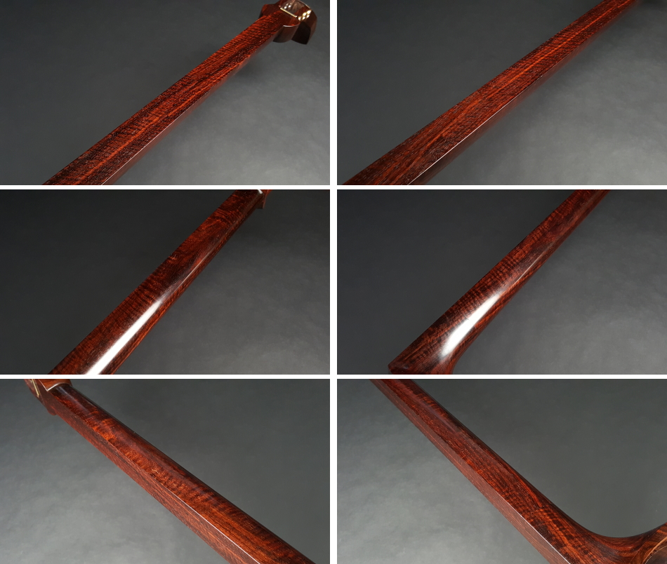 弊社の厳しい査定基準を満たした中古三味線の【厳選品】地唄金細三味線です。弊社の技術をいかんなく発揮し、最高の状態に仕上げました。 三味線のすべてを兼ね備えた最高品質の地唄三味線になります。新品でも中古でも滅多に入手ができない程の品物です。大変な希少品でございます。もう少し高く販売したい程の三味線ですが、中古ですので、これでも価格を抑えております。 棹は写真の通り棹全体にトチが巻いており木の質も硬質で凄く良いです。紅木材の中でもこれ以上のものは無いというほどの最高級クラスになります。トップレベルの密度の高さです。 棹表面はカンベリはしておりませんでしたが、磨きを入れておりますの綺麗な状態です。表面以外も艶があり全体的にすごく綺麗な状態です。 糸巻きは本象牙面取り(中古)が付いており、調整済みので止まり具合も良好です。 こちらの三味線は現在小売店店頭での新品約250万円以上相当になります。 胴は子持ち綾杉胴です。胴も色落ち、目立つ傷もなく、艶があり、中古でも大変綺麗な方だと思います。胴の色合いは写真の通りです。ハの高さや下がりなども点検済みでございます。 皮は極上の表面四つ皮、裏面犬皮(通常価格85,000円)をお張りいたしました。東京だと同等の皮張りだけで10万円はいたします。非常に繊細で美しい音色を奏でております。さすが金細三味線です。 付属品に関しては、気持ちよく使用していただきたいので全て新品を取り付けております。 全体的に目立った傷もなく、中古品の中でも綺麗な状態ですが、あくまでも中古品ですので、細かい傷や色むらなどが気になられる方は新品三味線の方でご検討いただければ幸いでございます。 ご不明な点等ございましたらお気軽にお問い合わせください。 ◆胴掛け、音緒は変更可能です。変更ご希望の方はご注文画面の通信欄に「胴掛け変更希望」とお書き添えください。ご注文後にメールで胴掛けの写真を数点お見せいたします。 ※月々12,600円払いでお買い求めいただけます! (オリコWEBクレジットローン36回払いの場合) ↓シミュレーション機能で毎月のお支払額の確認ができます。 【三味線は購入した後が大事】 三味線は消耗品でもありますので、長くご使用いただいていると、糸巻きが消耗して緩みやすくなったり、皮張替えが必要になったりと何れは修理などが必要になる時が訪れます。弊社ではご購入後のアフターフォローも万全を期しておりますので、「売って終わり」ではなく、修理などもお安くさせていただき、ご使用いただいていく上でのご質問やご相談など責任をもってサポートをさせていただき、お客様とは長いお付き合いをさせていただきたいと思っております。 弊社では「三味線の知識と選び方」のページでもご説明しております通り、中古三味線(個人売買等)はお勧めしておりませんが、ここ近年「三味線を買い取ってくれませんか?」や「中古三味線は取り扱っていませんか?」などの問い合わせが多い為、弊社独自の大変厳しい査定基準を設け、その基準を満たした三味線のみを買い取り、中古三味線として販売することといたしました。 厳しい買取査定基準を設けることで、数多くの中古三味線を取り扱う(ご用意する)ことは難しいですが、中古でも長くご愛用いただけるものをご用意させていただきます。もちろん、定期的に必要な皮張替え修理や糸巻き調整などの修理、ご購入後のアフター等は責任を持って弊社で行わせていただきます。 ※無傷の三味線を探しの方は新品三味線の方でご検討くださいませ。 ◇古物商許可証 第931010001749号 お客さまの声ページに弊社でご購入いただきましたお客様のご感想を掲載いたしております。 ※お客様へ 三味線をご購入いただきましたお客様からのご感想メールをお待ちいたしております。宜しくお願いいたします。