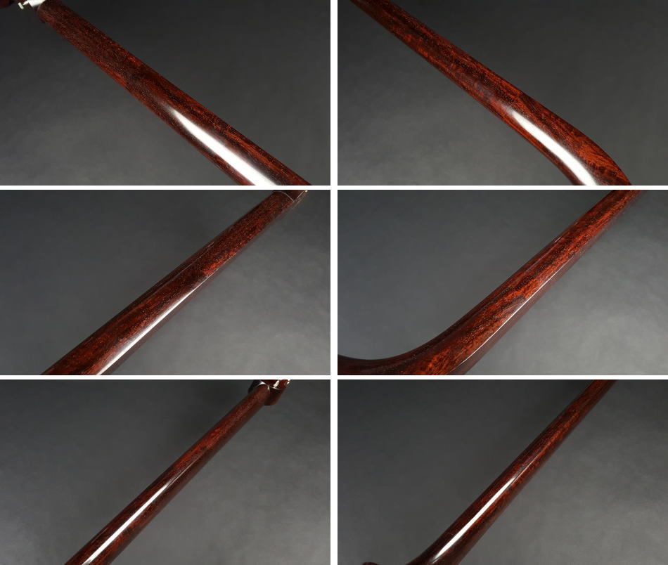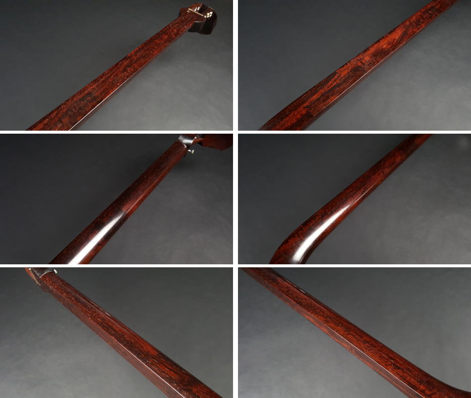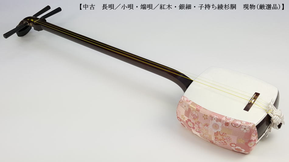 弊社の厳しい査定基準を満たした中古三味線の【厳選品】長唄/小唄端唄紅木銀細三味線(子持ち綾杉胴)です。 棹は細棹で銀細クラスの中では硬質です。東サワリも付いておりますので幅広いジャンルで使用可能でございます。 実際に前持ち主の方は長唄、小唄、民謡で使用されておりました。 棹表面はカンベリ直し修理をしておりますので、新品のように綺麗な状態です。表面以外も深みのある艶があり全体的に綺麗な状態です。 糸巻きは本黒檀が付いておりますが、調整済みですのでストレスなくご使用いただけます。 胴は子持ち綾杉胴(5厘大)です。胴にも傷はなく、艶があり中古でも大変綺麗な方だと思います。胴の色合いは写真の通りです。ハの高さや下がりなども点検、調整済みでございます。 皮は極上の両面犬皮(通常価格40,000円)をお張りいたしましたので、三味線の音色を最大限引き出しております。 ハの高さや下がりなども点検、調整済みでございます。 付属品に関しては、気持ちよく使用していただきたいので、小物類は全て新品を取り付けております。 こちらの三味線は現在小売店店頭であれば新品約70~80万円前後の相場ですが、花林三味線(新品)の定価並のお値段で銀細三味線が手に入ります。今から始められる方や花林三味線からのお買い替えをご検討の方におすすめの三味線です。 全体的に目立った傷もなく、中古品の中でも綺麗な状態ですが、あくまでも中古品ですので、細かい傷や色むらなどが気になられる方は新品三味線の方でご検討いただければ幸いでございます。 ご不明な点等ございましたらお気軽にお問い合わせください。 ◆胴掛け、音緒は変更可能です。変更ご希望の方はご注文画面の通信欄に「胴掛け変更希望」とお書き添えください。ご注文後にメールで胴掛けの写真を数点お見せいたします。 ※月々4,600円払いでお買い求めいただけます! (オリコWEBクレジットローン36回払いの場合) ↓シミュレーション機能で毎月のお支払額の確認ができます。 【三味線は購入した後が大事】 三味線は消耗品でもありますので、長くご使用いただいていると、糸巻きが消耗して緩みやすくなったり、皮張替えが必要になったりと何れは修理などが必要になる時が訪れます。弊社ではご購入後のアフターフォローも万全を期しておりますので、「売って終わり」ではなく、修理などもお安くさせていただき、ご使用いただいていく上でのご質問やご相談など責任をもってサポートをさせていただき、お客様とは長いお付き合いをさせていただきたいと思っております。 弊社では「三味線の知識と選び方」のページでもご説明しております通り、中古三味線(個人売買等)はお勧めしておりませんが、ここ近年「三味線を買い取ってくれませんか?」や「中古三味線は取り扱っていませんか?」などの問い合わせが多い為、弊社独自の大変厳しい査定基準を設け、その基準を満たした三味線のみを買い取り、中古三味線として販売することといたしました。 厳しい買取査定基準を設けることで、数多くの中古三味線を取り扱う(ご用意する)ことは難しいですが、中古でも長くご愛用いただけるものをご用意させていただきます。もちろん、定期的に必要な皮張替え修理や糸巻き調整などの修理、ご購入後のアフター等は責任を持って弊社で行わせていただきます。 ※無傷の三味線を探しの方は新品三味線の方でご検討くださいませ。 ◇古物商許可証 第931010001749号 お客さまの声ページに弊社でご購入いただきましたお客様のご感想を掲載いたしております。 ※お客様へ 三味線をご購入いただきましたお客様からのご感想メールをお待ちいたしております。宜しくお願いいたします。