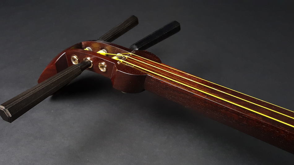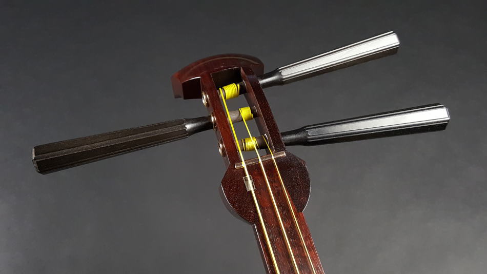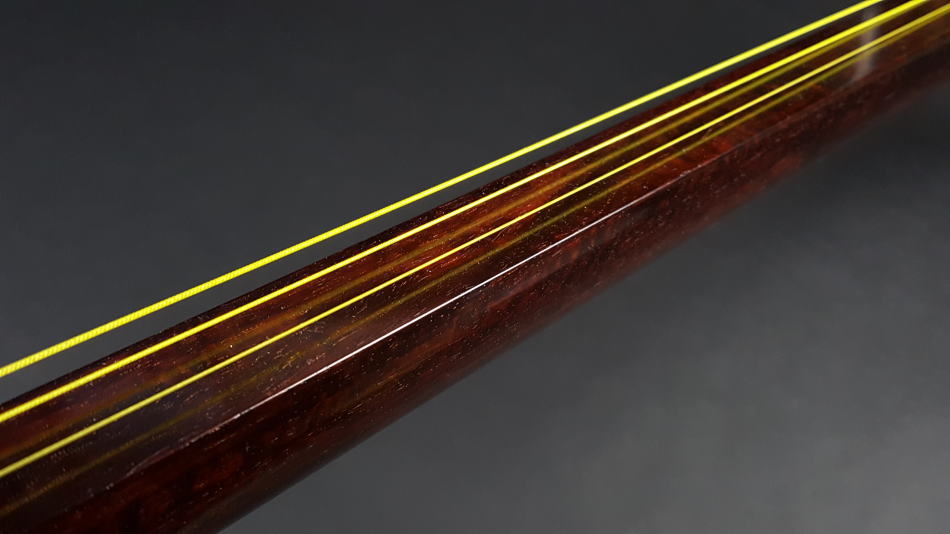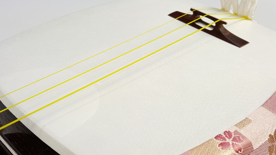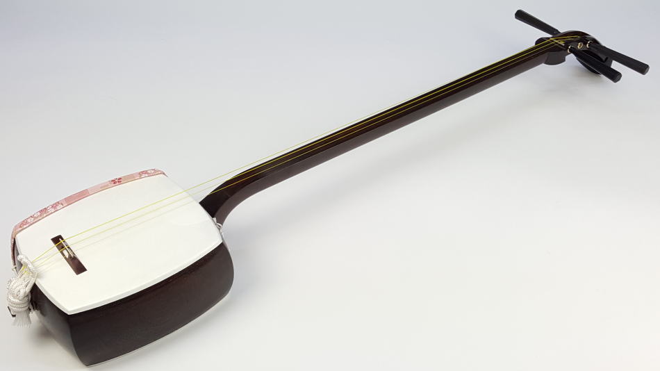 | 中古三味線 長唄/小唄・端唄/銀細三味線・子持ち綾杉胴 商品番号 WKT-TS038 |