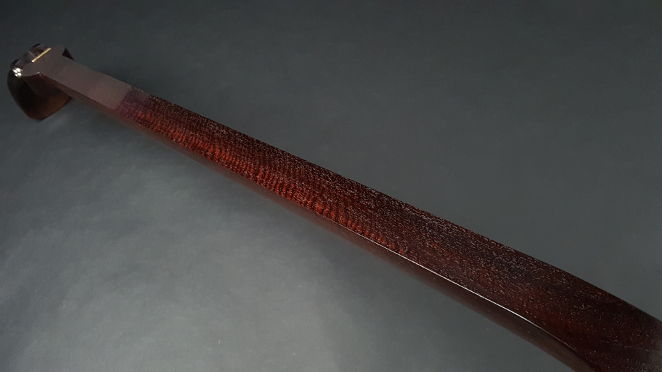 弊社の厳しい査定基準を満たした中古三味線の【厳選品】長唄・小唄・端唄金細三味線です。 三味線のすべてを兼ね備えた最高品質の三味線になります。中古でも滅多に入手ができない程の品物です。もう少し高く販売したい程の三味線ですが、中古ですのでこれでも価格を抑えております。 棹は写真の通り棹全体にトチ巻いており木の質も凄く良いです。 棹は細棹の中では太めになります。前持ち主の方はメインに小唄用として使用されておりましたが、長唄用としてもご使用いただけます。 棹表面はカンベリはしておりませんでしたが、磨きを入れておりますの綺麗な状態です。表面以外も艶があり全体的にすごく綺麗な状態です。 糸巻きは紅木本黒檀が付いております。摩耗も少なく、調整済みなので止まり具合も良好です。 こちらの三味線は現在小売店店頭での新品約200万円以上相当になります。 胴は子持ち綾杉胴(長唄胴)です。胴には目立つ傷もなく艶もあり、全体的に中古でも綺麗な方だと思います。胴の色合いは写真の通りです。ハの高さや下がりなども点検、調整済みでございます。 皮は極上の両面四つ(通常価格80,000円)をお張りいたしました。東京だと同等の皮張りだけで10万円以上はいたします。非常に繊細で美しい音色を奏でております。さすが金細三味線です。 付属品に関しては、気持ちよく使用していただきたいので全て新品を取り付けております。 全体的に目立った傷もなく、中古品の中でも綺麗な状態ですが、あくまでも中古品ですので、細かい傷や色むらなどが気になられる方は新品三味線の方でご検討いただければ幸いでございます。 ご不明な点等ございましたらお気軽にお問い合わせください。 ◆胴掛け、音緒は変更可能です。変更ご希望の方はご注文画面の通信欄に「胴掛け変更希望」とお書き添えください。ご注文後にメールで胴掛けの写真を数点お見せいたします。 ※月々10,800円払いでお買い求めいただけます! (オリコWEBクレジットローン36回払いの場合) ↓シミュレーション機能で毎月のお支払額の確認ができます。 【三味線は購入した後が大事】 三味線は消耗品でもありますので、長くご使用いただいていると、糸巻きが消耗して緩みやすくなったり、皮張替えが必要になったりと何れは修理などが必要になる時が訪れます。弊社ではご購入後のアフターフォローも万全を期しておりますので、「売って終わり」ではなく、修理などもお安くさせていただき、ご使用いただいていく上でのご質問やご相談など責任をもってサポートをさせていただき、お客様とは長いお付き合いをさせていただきたいと思っております。 弊社では「三味線の知識と選び方」のページでもご説明しております通り、中古三味線(個人売買等)はお勧めしておりませんが、ここ近年「三味線を買い取ってくれませんか?」や「中古三味線は取り扱っていませんか?」などの問い合わせが多い為、弊社独自の大変厳しい査定基準を設け、その基準を満たした三味線のみを買い取り、中古三味線として販売することといたしました。 厳しい買取査定基準を設けることで、数多くの中古三味線を取り扱う(ご用意する)ことは難しいですが、中古でも長くご愛用いただけるものをご用意させていただきます。もちろん、定期的に必要な皮張替え修理や糸巻き調整などの修理、ご購入後のアフター等は責任を持って弊社で行わせていただきます。 ※無傷の三味線を探しの方は新品三味線の方でご検討くださいませ。 ◇古物商許可証 第931010001749号 お客さまの声ページに弊社でご購入いただきましたお客様のご感想を掲載いたしております。 ※お客様へ 三味線をご購入いただきましたお客様からのご感想メールをお待ちいたしております。宜しくお願いいたします。