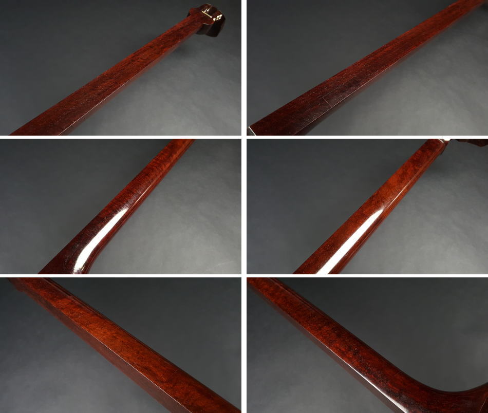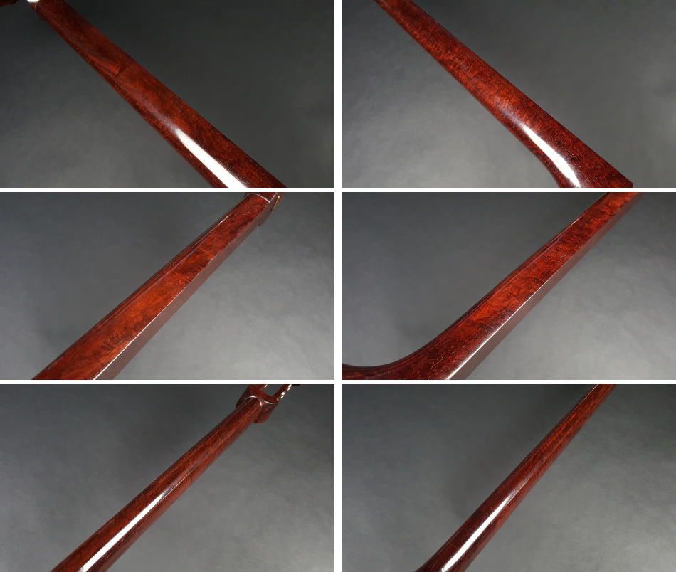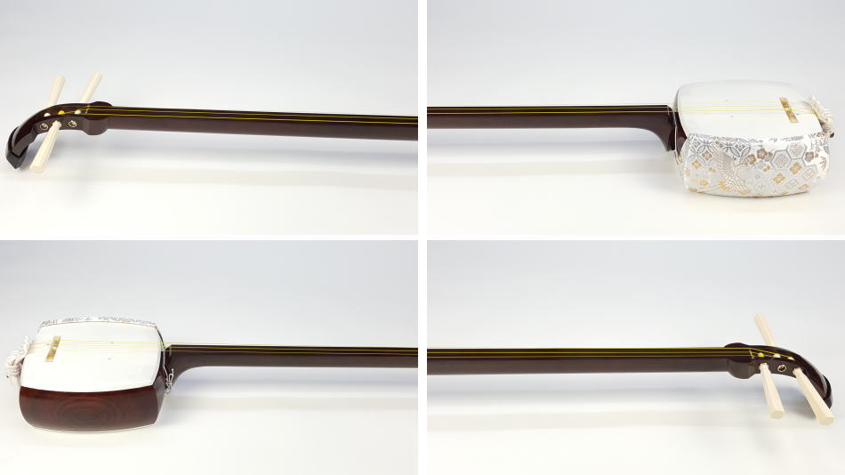 弊社の厳しい査定基準を満たした中古三味線の【厳選品】地唄金細三味線です。 三味線のすべてを兼ね備えた最高品質の地唄三味線になります。中古でも滅多に入手ができない程の品物です。もう少し高く販売したい程の三味線ですが、中古ですのでこれでも価格を抑えております。 棹は沈みトチが棹全体に入っており木の質も硬質で凄く良いです。 全体的に見ますとあまり使用してないようにも感じます 棹表面はカンベリはしておりませんでしたが、磨きを入れておりますの綺麗な状態です。表面以外も濡れたような深みのある艶があり、全体的にすごく綺麗な状態です。 糸巻きは本象牙(中古)が付いており、調整済みので止まり具合も良好です。 こちらの三味線は現在小売店店頭での新品約200万円以上相当になります。 胴は子持ち綾杉胴(一分五厘大)です。胴にも傷という傷もなく、全体的に中古でも大変綺麗な方だと思います。胴の色合いは写真の通りです。ハの高さや下がりなども点検、調整済みでございます。 皮は極上の表面四つ皮、裏面犬皮(通常価格85,000円)をお張りいたしました。東京だと同等の皮張りだけで10万円以上はいたします。非常に繊細で美しく、落ち着きのある音色を奏でております。さすが金細三味線です。 付属品に関しては、気持ちよく使用していただきたいので全て新品を取り付けております。 全体的に目立った傷もなく、中古品の中でも綺麗な状態ですが、あくまでも中古品ですので、細かい傷や色むらなどが気になられる方は新品三味線の方でご検討いただければ幸いでございます。 ご不明な点等ございましたらお気軽にお問い合わせください。 ◆胴掛け、音緒は変更可能です。変更ご希望の方はご注文画面の通信欄に「胴掛け変更希望」とお書き添えください。ご注文後にメールで胴掛けの写真を数点お見せいたします。 ※月々10,800円払いでお買い求めいただけます! (オリコWEBクレジットローン36回払いの場合) ↓シミュレーション機能で毎月のお支払額の確認ができます。 【三味線は購入した後が大事】 三味線は消耗品でもありますので、長くご使用いただいていると、糸巻きが消耗して緩みやすくなったり、皮張替えが必要になったりと何れは修理などが必要になる時が訪れます。弊社ではご購入後のアフターフォローも万全を期しておりますので、「売って終わり」ではなく、修理などもお安くさせていただき、ご使用いただいていく上でのご質問やご相談など責任をもってサポートをさせていただき、お客様とは長いお付き合いをさせていただきたいと思っております。 弊社では「三味線の知識と選び方」のページでもご説明しております通り、中古三味線(個人売買等)はお勧めしておりませんが、ここ近年「三味線を買い取ってくれませんか?」や「中古三味線は取り扱っていませんか?」などの問い合わせが多い為、弊社独自の大変厳しい査定基準を設け、その基準を満たした三味線のみを買い取り、中古三味線として販売することといたしました。 厳しい買取査定基準を設けることで、数多くの中古三味線を取り扱う(ご用意する)ことは難しいですが、中古でも長くご愛用いただけるものをご用意させていただきます。もちろん、定期的に必要な皮張替え修理や糸巻き調整などの修理、ご購入後のアフター等は責任を持って弊社で行わせていただきます。 ※無傷の三味線を探しの方は新品三味線の方でご検討くださいませ。 ◇古物商許可証 第931010001749号 お客さまの声ページに弊社でご購入いただきましたお客様のご感想を掲載いたしております。 ※お客様へ 三味線をご購入いただきましたお客様からのご感想メールをお待ちいたしております。宜しくお願いいたします。