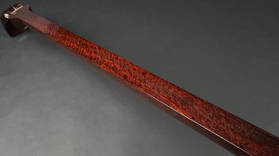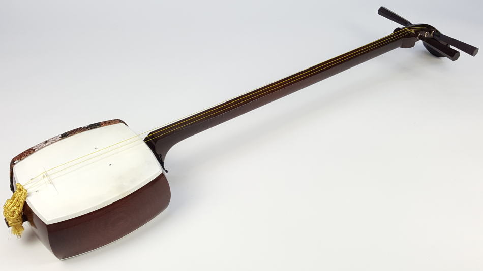 弊社の厳しい査定基準を満たした中古三味線の【厳選品】民謡金細三味線(正寸)です。 最高品質の民謡三味線になります。中古でも滅多に入手ができない程の品物です。もう少し高く販売したい程の三味線ですが、中古ですのでこれでも価格を抑えております。 棹は写真の通り棹全体にトチが巻いており木の質も硬質で凄く良いです。中古でもそう簡単には手に入れることはできないと思います。 棹表面はカンベリはしておりませんでしたが、磨きを入れておりますの綺麗な状態です。表面以外も艶があり全体的にすごく綺麗な状態です。 糸巻きは紅木本黒檀(中古)が付いており、調整済みので止まり具合も良好です。 こちらの三味線は現在小売店店頭での新品約200万円以上相当になります。 胴は子持ち綾杉胴(5厘大)です。胴には傷ひとつなく、新品に近い艶がございます。胴の色合いは写真の通りです。ハの高さや下がりなども点検、調整済みでございます。 皮は極上の両面四つ(通常価格80,000円)をお張りいたしました。東京だと同等の皮張りだけで10万円以上はいたします。非常に繊細で美しい音色を奏でております。さすが金細三味線です。 付属品に関しては、気持ちよく使用していただきたいので全て新品を取り付けております。 全体的に目立った傷もなく、中古品の中でも綺麗な状態ですが、あくまでも中古品ですので、細かい傷や色むらなどが気になられる方は新品三味線の方でご検討いただければ幸いでございます。 ご不明な点等ございましたらお気軽にお問い合わせください。 ◆胴掛け、音緒は変更可能です。変更ご希望の方はご注文画面の通信欄に「胴掛け変更希望」とお書き添えください。ご注文後にメールで胴掛けの写真を数点お見せいたします。 ※月々10,000円払いでお買い求めいただけます! (オリコWEBクレジットローン36回払いの場合) ↓シミュレーション機能で毎月のお支払額の確認ができます。 【三味線は購入した後が大事】 三味線は消耗品でもありますので、長くご使用いただいていると、糸巻きが消耗して緩みやすくなったり、皮張替えが必要になったりと何れは修理などが必要になる時が訪れます。弊社ではご購入後のアフターフォローも万全を期しておりますので、「売って終わり」ではなく、修理などもお安くさせていただき、ご使用いただいていく上でのご質問やご相談など責任をもってサポートをさせていただき、お客様とは長いお付き合いをさせていただきたいと思っております。 弊社では「三味線の知識と選び方」のページでもご説明しております通り、中古三味線(個人売買等)はお勧めしておりませんが、ここ近年「三味線を買い取ってくれませんか?」や「中古三味線は取り扱っていませんか?」などの問い合わせが多い為、弊社独自の大変厳しい査定基準を設け、その基準を満たした三味線のみを買い取り、中古三味線として販売することといたしました。 厳しい買取査定基準を設けることで、数多くの中古三味線を取り扱う(ご用意する)ことは難しいですが、中古でも長くご愛用いただけるものをご用意させていただきます。もちろん、定期的に必要な皮張替え修理や糸巻き調整などの修理、ご購入後のアフター等は責任を持って弊社で行わせていただきます。 ※無傷の三味線を探しの方は新品三味線の方でご検討くださいませ。 ◇古物商許可証 第931010001749号 お客さまの声ページに弊社でご購入いただきましたお客様のご感想を掲載いたしております。 ※お客様へ 三味線をご購入いただきましたお客様からのご感想メールをお待ちいたしております。宜しくお願いいたします。