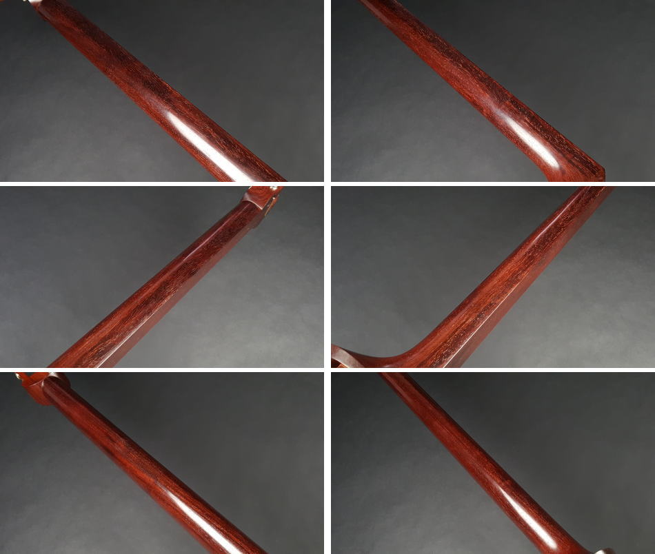 弊社の厳しい査定基準を満たした中古三味線の【厳選品】民謡紅木三味線(短棹1.5寸詰)です。 棹は並の紅木になります。木が堅く全体的に綺麗な状態です。 棹表面はカンベリ直し修理をしておりますので、新品のように綺麗な状態です。表面以外も艶があり全体的に綺麗な状態です。 糸巻きは本黒檀(中古)ですが、調整済みですので止まり具合も良好です。 胴は5厘大、丸打ち胴です。胴にも特に目立った傷もなく綺麗です。 皮は上の両面犬皮(通常価格35,000円)をお張りいたしましたので、三味線の音色を最大限引き出しております。 ハの高さや下がりなども点検、調整済みでございます。 新品の花林三味線並のお値段で中古の綺麗な紅木三味線は大変お買得だと思います。中古だからこそできるこの価格です。 こちらの三味線は現在小売店店頭であれば新品約35万円~40万円が相場です。 付属品に関しては、気持ちよく使用していただきたいので、小物類は全て新品を取り付けております。 全体的に目立った傷もなく、中古品の中でもすごく綺麗な状態ですが、あくまでも中古品ですので、細かい傷や色むらなどが気になられる方は新品三味線の方でご検討いただければ幸いでございます。 ご不明な点等ございましたらお気軽にお問い合わせください。 ◆胴掛け、音緒は変更可能です。変更ご希望の方はご注文画面の通信欄に「胴掛け変更希望」とお書き添えください。ご注文後にメールで胴掛けの写真を数点お見せいたします。 ※月々3,100円払いでお買い求めいただけます! (オリコWEBクレジットローン36回払いの場合) ↓シミュレーション機能で毎月のお支払額の確認ができます。 【三味線は購入した後が大事】 三味線は消耗品でもありますので、長くご使用いただいていると、糸巻きが消耗して緩みやすくなったり、皮張替えが必要になったりと何れは修理などが必要になる時が訪れます。弊社ではご購入後のアフターフォローも万全を期しておりますので、「売って終わり」ではなく、修理などもお安くさせていただき、ご使用いただいていく上でのご質問やご相談など責任をもってサポートをさせていただき、お客様とは長いお付き合いをさせていただきたいと思っております。 弊社では「三味線の知識と選び方」のページでもご説明しております通り、中古三味線(個人売買等)はお勧めしておりませんが、ここ近年「三味線を買い取ってくれませんか?」や「中古三味線は取り扱っていませんか?」などの問い合わせが多い為、弊社独自の大変厳しい査定基準を設け、その基準を満たした三味線のみを買い取り、中古三味線として販売することといたしました。 厳しい買取査定基準を設けることで、数多くの中古三味線を取り扱う(ご用意する)ことは難しいですが、中古でも長くご愛用いただけるものをご用意させていただきます。もちろん、定期的に必要な皮張替え修理や糸巻き調整などの修理、ご購入後のアフター等は責任を持って弊社で行わせていただきます。 ※無傷の三味線を探しの方は新品三味線の方でご検討くださいませ。 ◇古物商許可証 第931010001749号 お客さまの声ページに弊社でご購入いただきましたお客様のご感想を掲載いたしております。 ※お客様へ 三味線をご購入いただきましたお客様からのご感想メールをお待ちいたしております。宜しくお願いいたします。