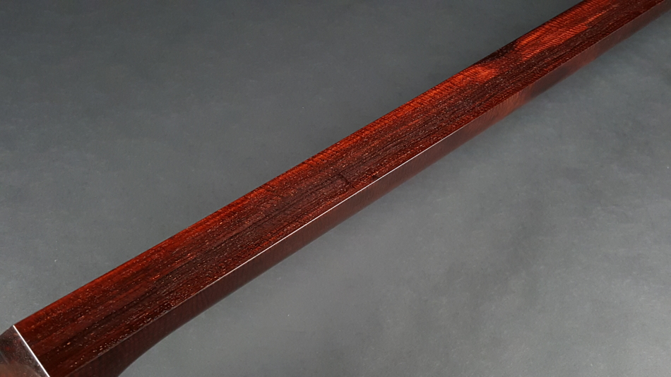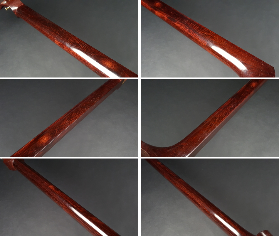 弊社の厳しい査定基準を満たした中古三味線の【厳選品】民謡金細三味線(短棹1.5寸詰)です。弊社の技術をいかんなく発揮し、最高の状態に仕上げました。 三味線のすべてを兼ね備えた最高品質の民謡三味線になります。新品でも中古でも滅多に入手ができない程の品物です。もう少し高く販売したい程の三味線ですが、中古ですので、これでも価格を抑えております。 棹は写真の通り棹全体に整った細かいトチが巻いており木の質も硬質で凄く良いです。紅木材の中でもこれ以上のものは無いというほどの最高級クラスになります。トップレベルの密度の高さと、滅多にお目にかかれないほどのトチ模様です。 棹表面はカンベリはしておりませんでしたが、磨きを入れておりますの綺麗な状態です。表面以外も傷などもなく、深みのある艶があり、全体的にすごく綺麗な状態です。 とにかく良く鳴ります。軽く弾いただけで「シャーン」と繊細でやさしい音色を奏でます。軽く弾いただけで確り鳴りますので、力の弱い女性の方にもお勧めしたい三味線です。 こちらの三味線は現在小売店店頭での新品約300万円以上相当になります。 糸巻きは紅木本黒檀(中古)が付いており止まり具合も良好です。糸巻きは殆ど使用されていない為、新品同様です。 胴は子持ち綾杉胴です。胴も色落ち、目立つ傷もなく、艶があり、中古でも大変綺麗な方だと思います。胴の色合いは写真の通りです。ハの高さや下がりなども点検済みでございます。 皮は極上の両面四つ(通常価格80,000円)をお張りいたしました。東京だと同等の皮張りだけで10万円以上はいたします。非常に繊細で美しい音色を奏でております。さすが金細三味線です。 付属品に関しては、気持ちよく使用していただきたいので全て新品を取り付けております。 全体的に目立った傷もなく、中古品の中でも綺麗な状態ですが、あくまでも中古品ですので、細かい傷や色むらなどが気になられる方は新品三味線の方でご検討いただければ幸いでございます。 ご不明な点等ございましたらお気軽にお問い合わせください。 ◆胴掛け、音緒は変更可能です。変更ご希望の方はご注文画面の通信欄に「胴掛け変更希望」とお書き添えください。ご注文後にメールで胴掛けの写真を数点お見せいたします。 ※月々16,400円払いでお買い求めいただけます! (オリコWEBクレジットローン36回払いの場合) ↓シミュレーション機能で毎月のお支払額の確認ができます。 【三味線は購入した後が大事】 三味線は消耗品でもありますので、長くご使用いただいていると、糸巻きが消耗して緩みやすくなったり、皮張替えが必要になったりと何れは修理などが必要になる時が訪れます。弊社ではご購入後のアフターフォローも万全を期しておりますので、「売って終わり」ではなく、修理などもお安くさせていただき、ご使用いただいていく上でのご質問やご相談など責任をもってサポートをさせていただき、お客様とは長いお付き合いをさせていただきたいと思っております。 弊社では「三味線の知識と選び方」のページでもご説明しております通り、中古三味線(個人売買等)はお勧めしておりませんが、ここ近年「三味線を買い取ってくれませんか?」や「中古三味線は取り扱っていませんか?」などの問い合わせが多い為、弊社独自の大変厳しい査定基準を設け、その基準を満たした三味線のみを買い取り、中古三味線として販売することといたしました。 厳しい買取査定基準を設けることで、数多くの中古三味線を取り扱う(ご用意する)ことは難しいですが、中古でも長くご愛用いただけるものをご用意させていただきます。もちろん、定期的に必要な皮張替え修理や糸巻き調整などの修理、ご購入後のアフター等は責任を持って弊社で行わせていただきます。 ※無傷の三味線を探しの方は新品三味線の方でご検討くださいませ。 ◇古物商許可証 第931010001749号 お客さまの声ページに弊社でご購入いただきましたお客様のご感想を掲載いたしております。 ※お客様へ 三味線をご購入いただきましたお客様からのご感想メールをお待ちいたしております。宜しくお願いいたします。