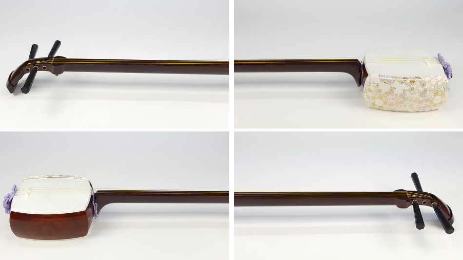 弊社の厳しい査定基準を満たした中古三味線の【厳選品】民謡金細三味線(短棹2寸短)です。2寸詰なので高い調子に合わせるのが楽に出来ます。(棹が短く、つぼとつぼの間隔が狭いのでお子様用の三味線としてもお勧めです) 棹は写真の通り全体にトチが多く、木の質も凄く良いです。 棹表面はカンベリ直し修理をしておりますので、新品のように綺麗な状態です。表面以外も艶があり全体的に綺麗な状態です。 糸巻きは本黒檀(中古)が付いておりますが、調整済みですのでストレスなくご使用いただけます。 こちらの三味線は現在小売店店頭での新品約150万円以上相当になります。(2寸短は在庫過多なので通常よりも格安にて出品しております) 胴は子持ち綾杉胴です。胴には所々細かい傷(数か所)がありますが殆ど目立ちません。よく見ないと気付かない程度です。胴にも艶があり中古でも綺麗な方だと思います。胴の色合いは写真の通りです。ハの高さや下がりなども点検、調整済みでございます。 皮は極上の両面犬皮(通常価格40,000円)をお張りいたしましたので、三味線の音色を最大限引き出しております。 付属品に関しては、気持ちよく使用していただきたいので、小物類は全て新品を取り付けております。 全体的に目立った傷もなく、中古品の中でも綺麗な状態ですが、あくまでも中古品ですので、細かい傷や色むらなどが気になられる方は新品三味線の方でご検討いただければ幸いでございます。 ご不明な点等ございましたらお気軽にお問い合わせください。 ◆胴掛け、音緒は変更可能です。変更ご希望の方はご注文画面の通信欄に「胴掛け変更希望」とお書き添えください。ご注文後にメールで胴掛けの写真を数点お見せいたします。 ※月々5,800円払いでお買い求めいただけます! (オリコWEBクレジットローン36回払いの場合) ↓シミュレーション機能で毎月のお支払額の確認ができます。 【三味線は購入した後が大事】 三味線は消耗品でもありますので、長くご使用いただいていると、糸巻きが消耗して緩みやすくなったり、皮張替えが必要になったりと何れは修理などが必要になる時が訪れます。弊社ではご購入後のアフターフォローも万全を期しておりますので、「売って終わり」ではなく、修理などもお安くさせていただき、ご使用いただいていく上でのご質問やご相談など責任をもってサポートをさせていただき、お客様とは長いお付き合いをさせていただきたいと思っております。 弊社では「三味線の知識と選び方」のページでもご説明しております通り、中古三味線(個人売買等)はお勧めしておりませんが、ここ近年「三味線を買い取ってくれませんか?」や「中古三味線は取り扱っていませんか?」などの問い合わせが多い為、弊社独自の大変厳しい査定基準を設け、その基準を満たした三味線のみを買い取り、中古三味線として販売することといたしました。 厳しい買取査定基準を設けることで、数多くの中古三味線を取り扱う(ご用意する)ことは難しいですが、中古でも長くご愛用いただけるものをご用意させていただきます。もちろん、定期的に必要な皮張替え修理や糸巻き調整などの修理、ご購入後のアフター等は責任を持って弊社で行わせていただきます。 ※無傷の三味線を探しの方は新品三味線の方でご検討くださいませ。 ◇古物商許可証 第931010001749号 お客さまの声ページに弊社でご購入いただきましたお客様のご感想を掲載いたしております。 ※お客様へ 三味線をご購入いただきましたお客様からのご感想メールをお待ちいたしております。宜しくお願いいたします。